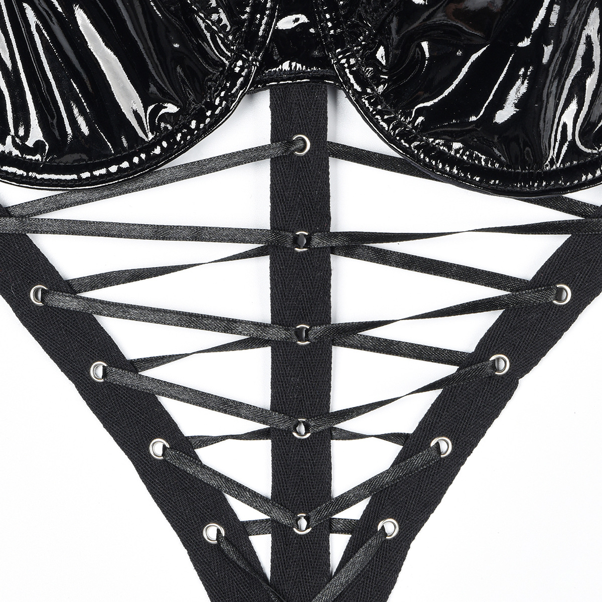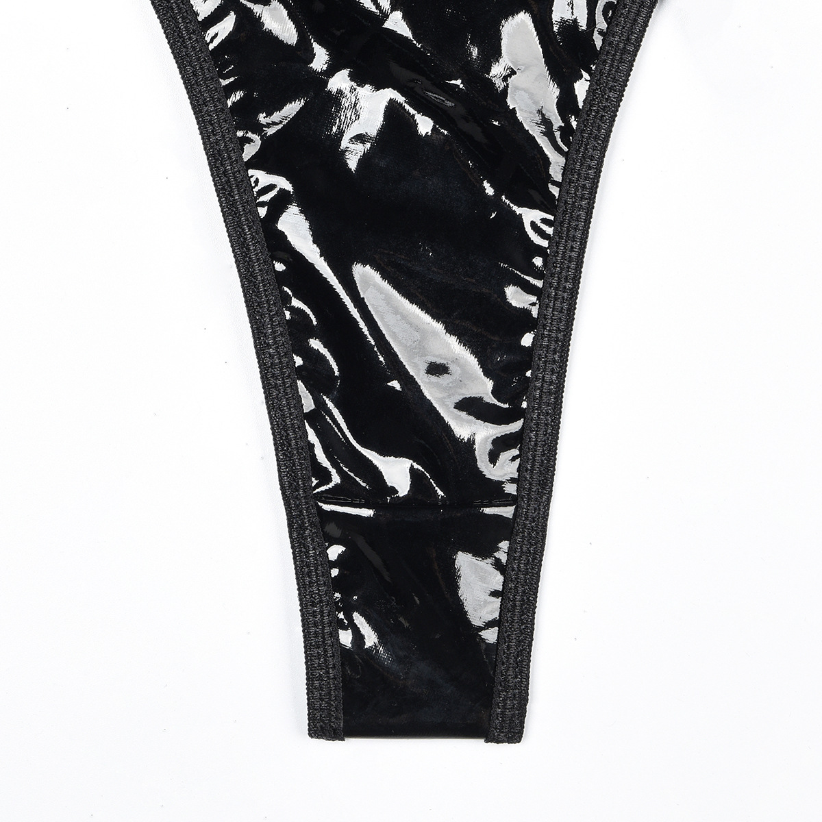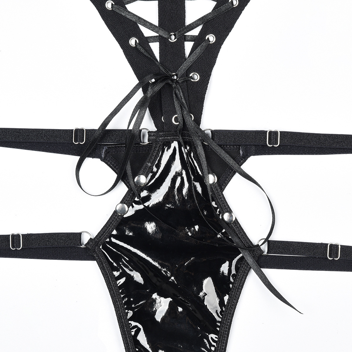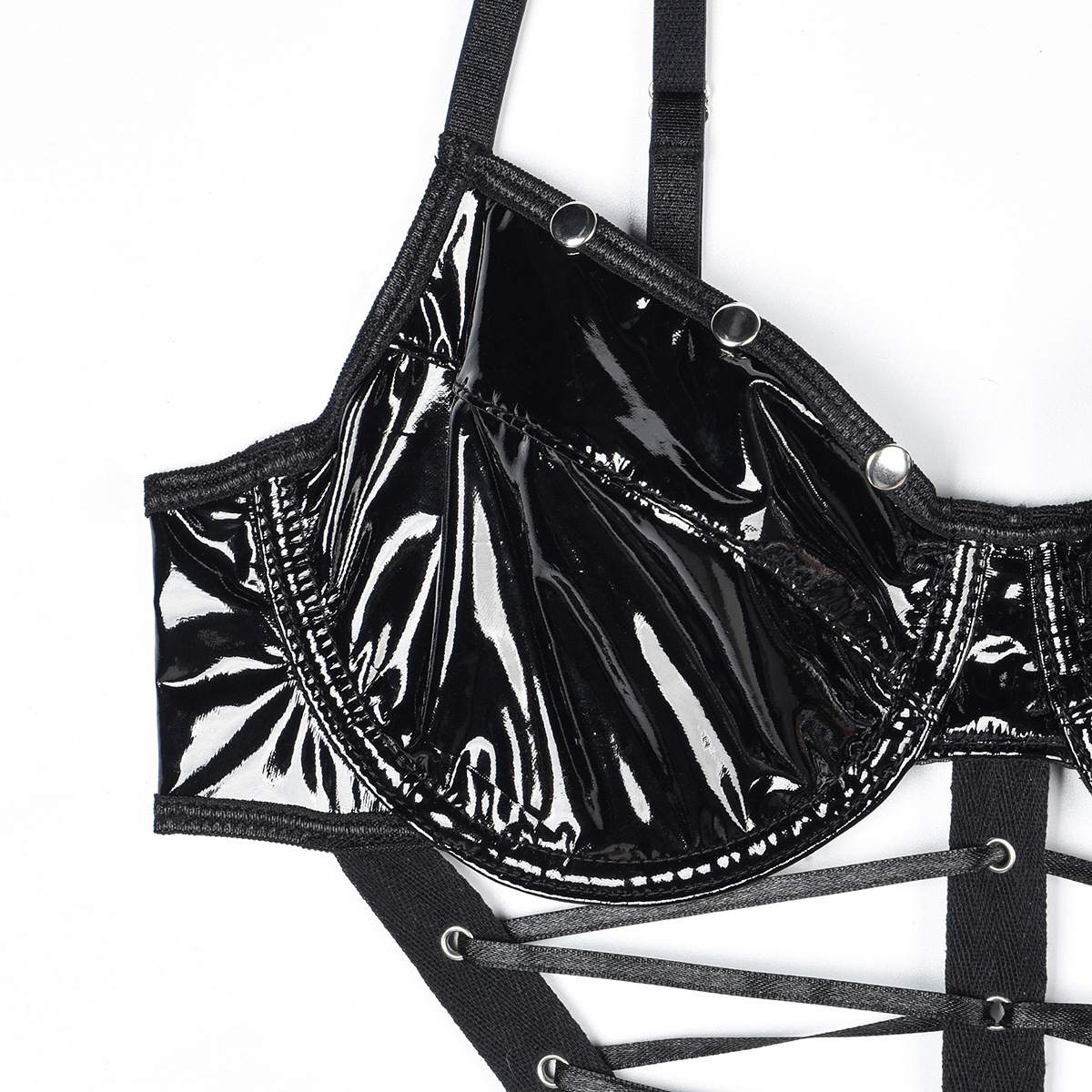 Magdalyn Women Sexy PU Strappy Bodysuits Bodycon Hot Catsuits Hollow Solid Rompers Fashion Erotic Faux Leather One Piece Onesie