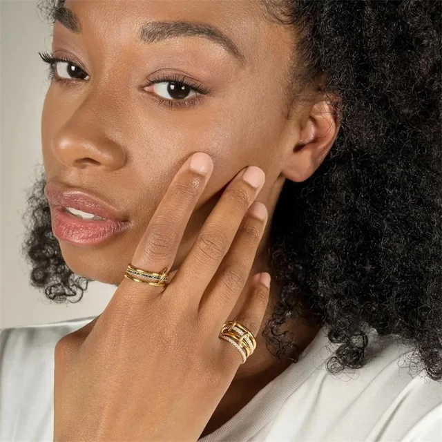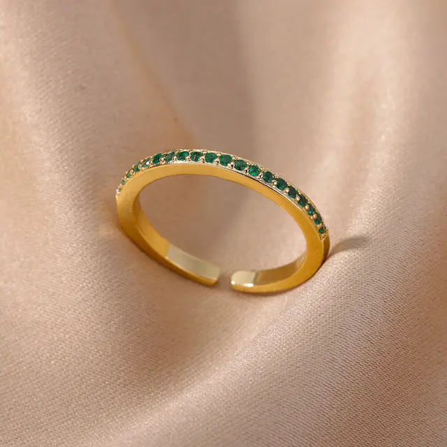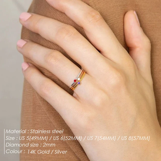 eManco Stainless Steel Birthstone Ring Gold Color Simple Fashion Style For Women Festival Party Gift