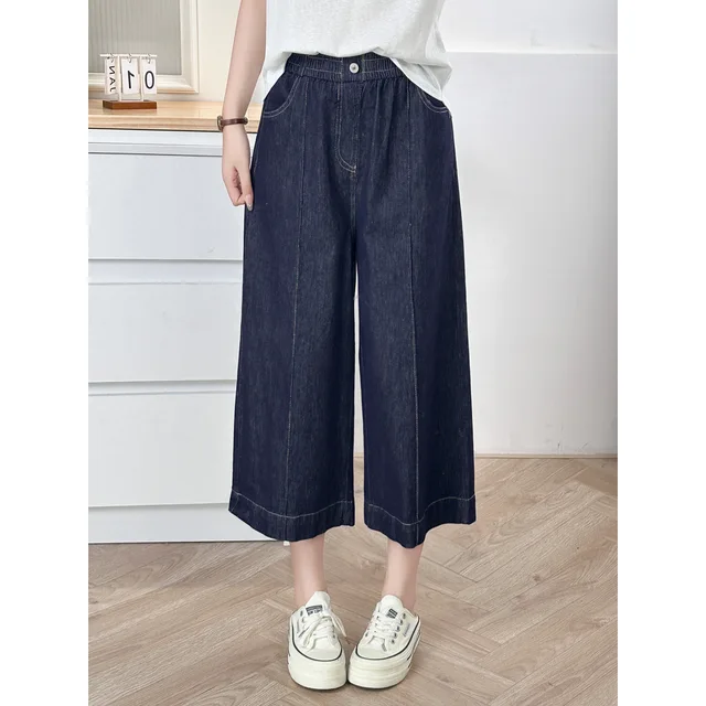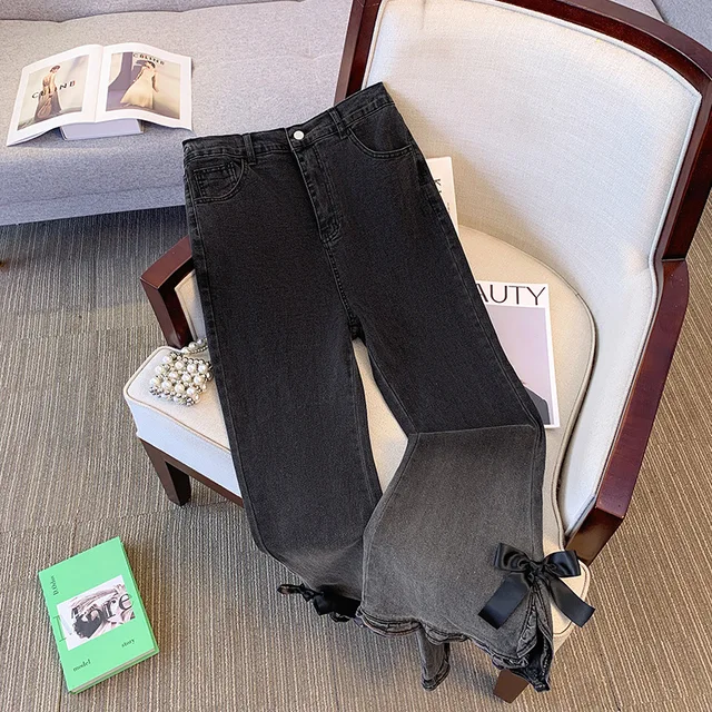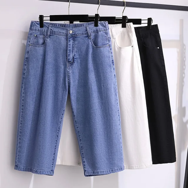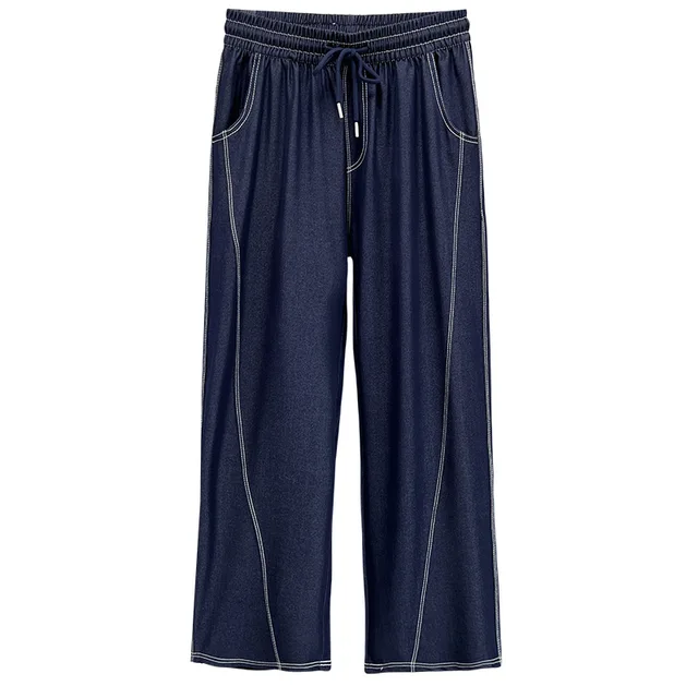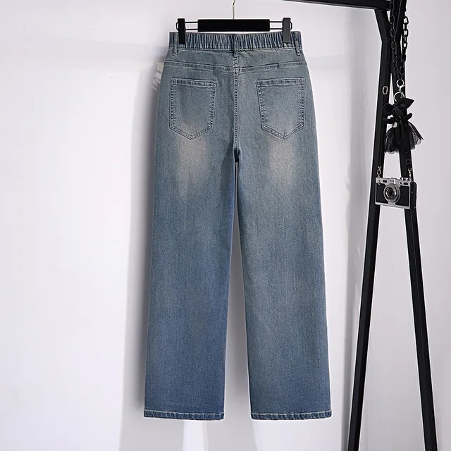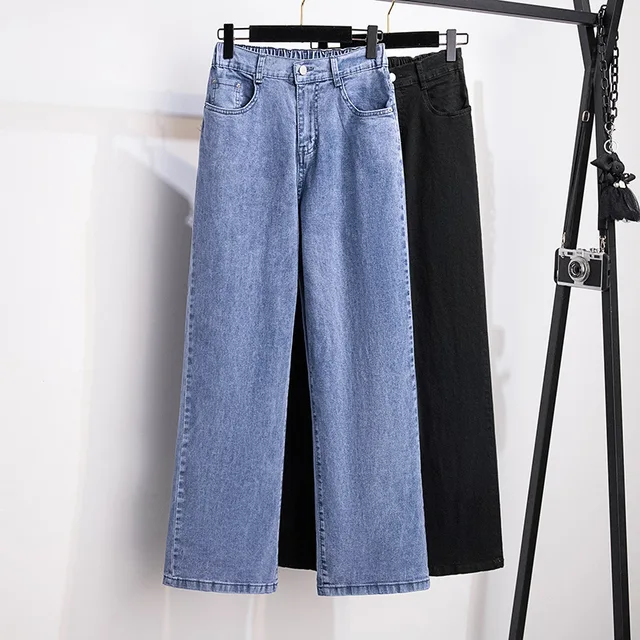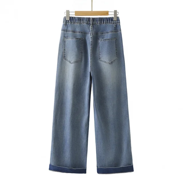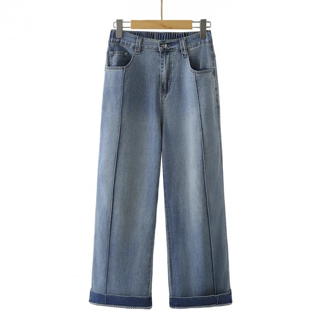 100KG New Summer Wide Leg Jeans Thin Bright Line Lyocell Denim Curved Plus Size Women’s Trousers 336