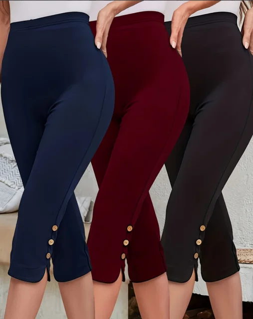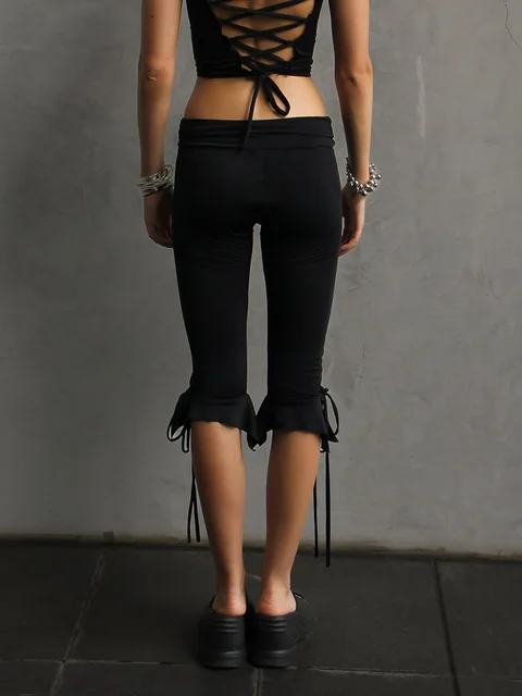 Women Capri Pants Solid Color Elastic Waist Tie-Up Summer Casual Cropped Pants Stretch Crop Leggings