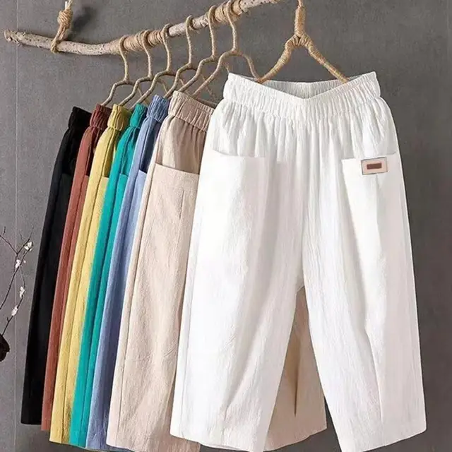 Women Capri Pants Solid Color Elastic Waist Tie-Up Summer Casual Cropped Pants Stretch Crop Leggings