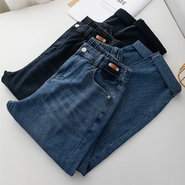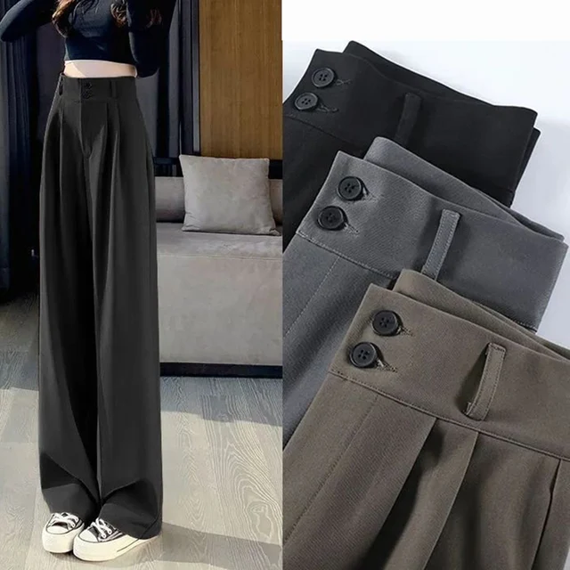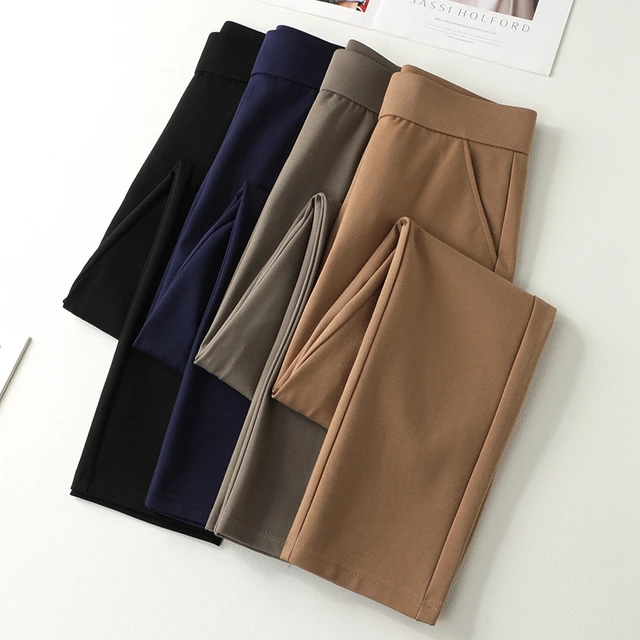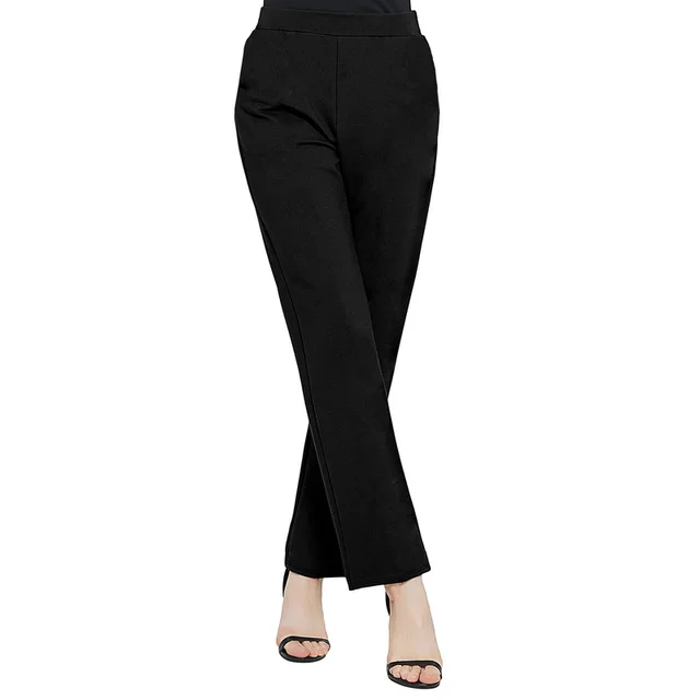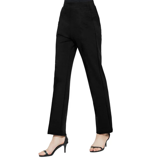 2025 Casual Elastic Waist Slim Straight Trousers Women Stretchy Slimming Black Office Daily Trousers