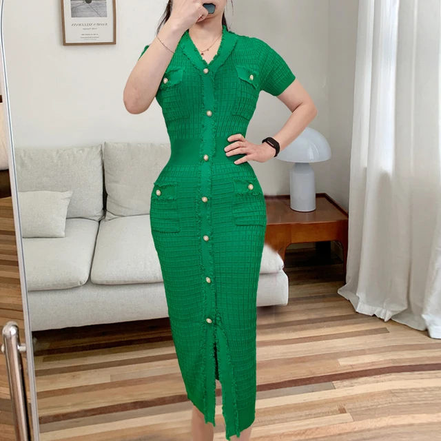 Women sexy knit V-neck reverse neck split dress autumn winter full sleeve elastic basic body sweater