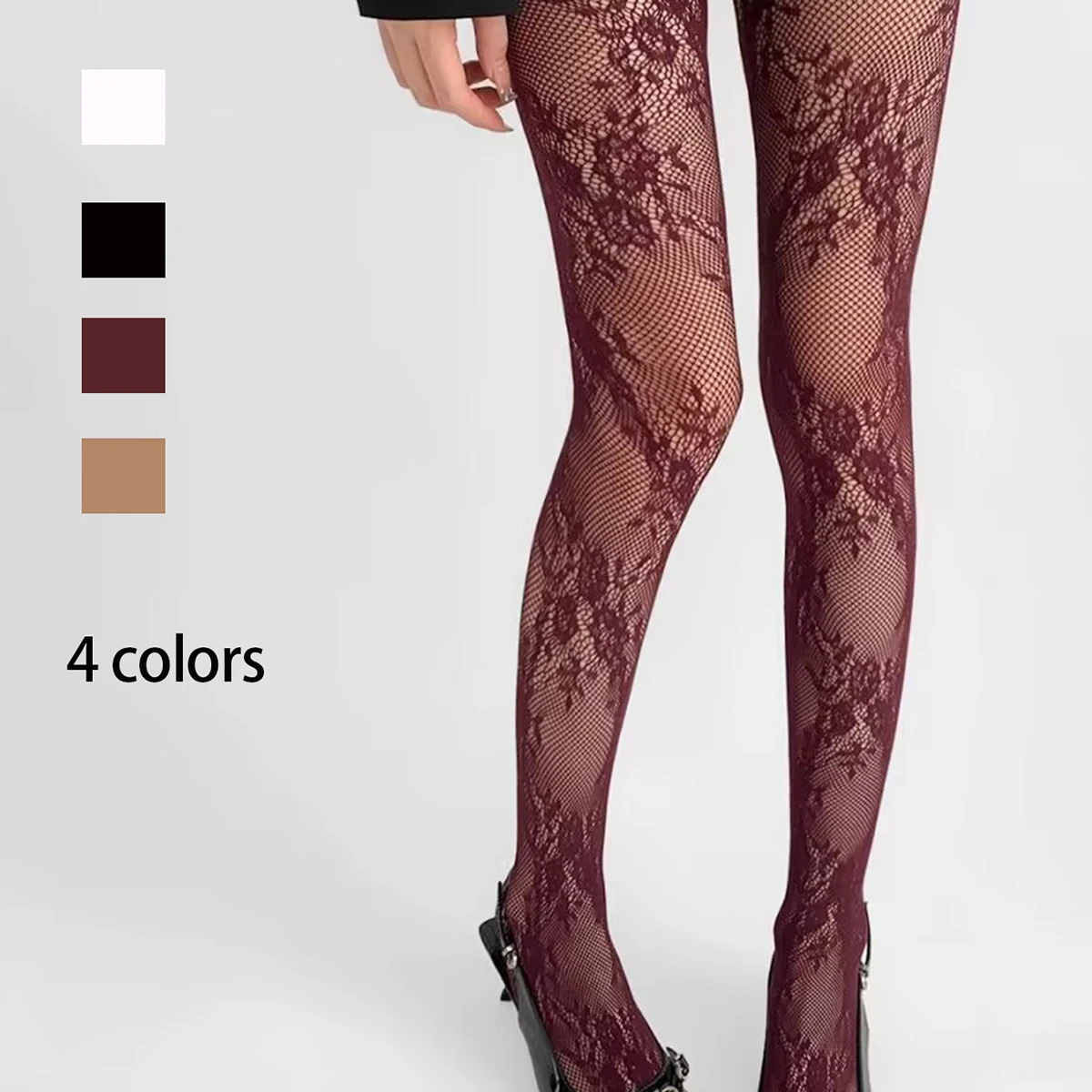 1 Piece Women 4 Colors Black White Wine Khaki Floral Romantic Hollow Out Lady Sexy Fashion Fishnet Tight Pantyhose