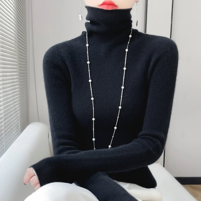 100% Merino Wool Long-sleeved Turtleneck Pullover Women’s Autumn Winter Slim Sweater Basic Women’s Clothes Cashmere Sweater