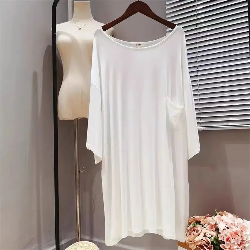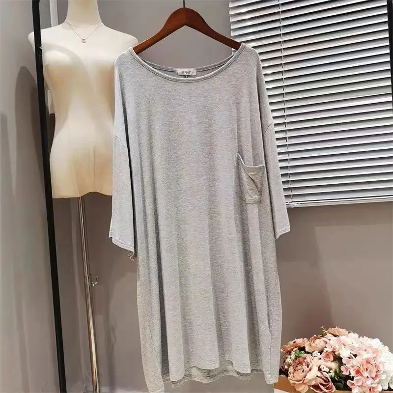 150KG Plus Size Loose Long Skirt Pajamas Women Short-sleeved Home Dress Ladies Thin Casual Nightdress Enlarged Sleep Shirts