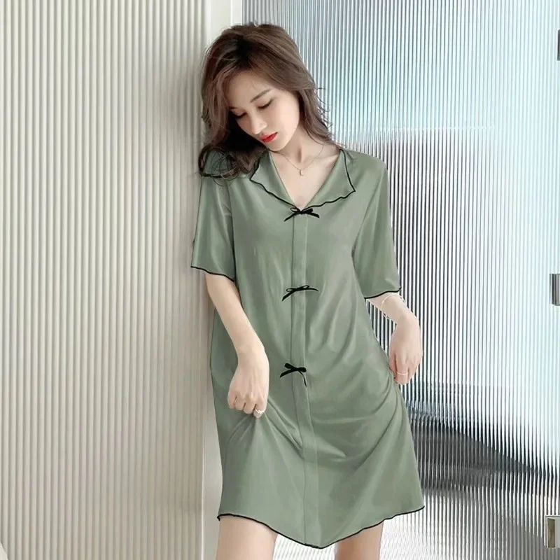 150kg Plus SIze Women Sexy Nightdress Summer Thin Short Sleeve Loose Maternity Loungewear Oversized Pajamas Soft Home Clothes