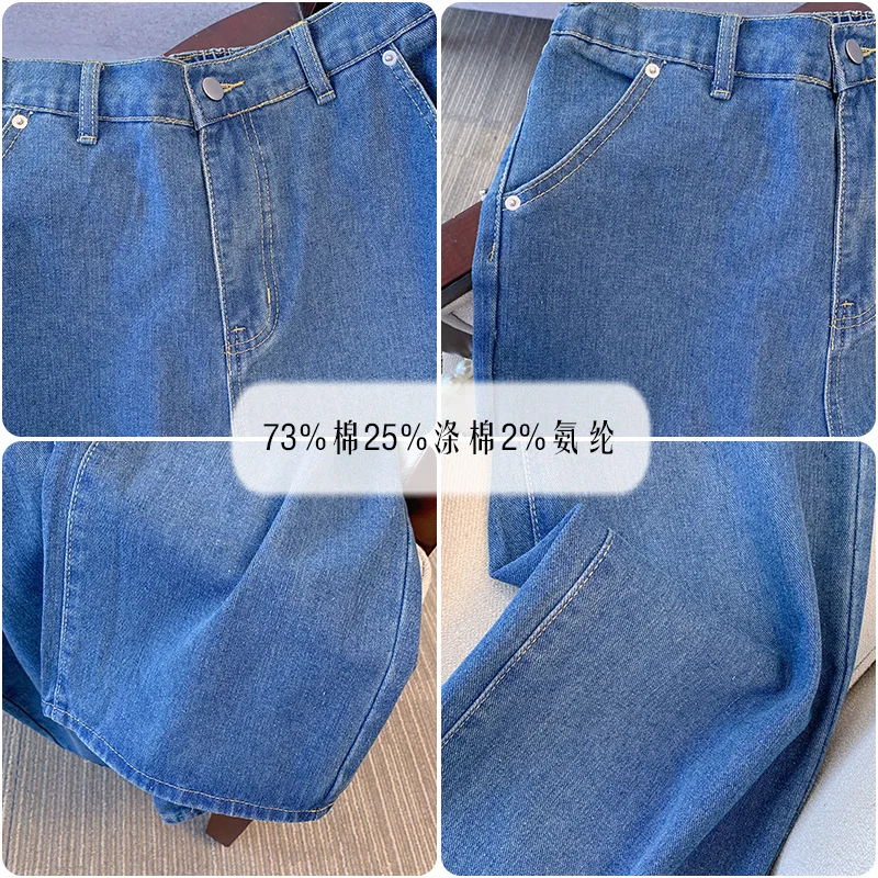 150Kg Plus Size Women’s Hip 136 Autumn Street Style Jeans Loose Straight Leg Elastic Waist Denim Pants 7XL 8XL 9XL