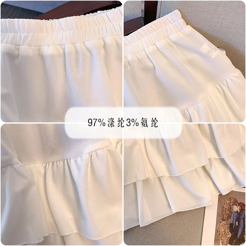 150Kg Plus Size Women’s Hip 165 Cake Short Skirt Casual Pleated Ruffled Edge Skirt Black White 5XL 6XL 7XL 8XL 9XL