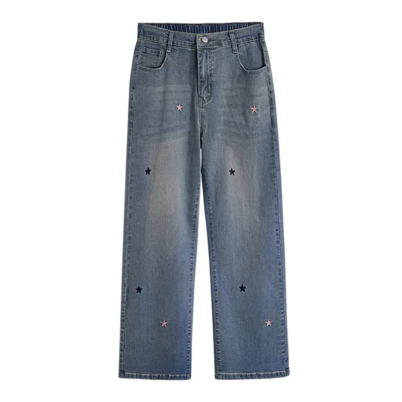 150Kg Plus Size Women’s Spring Autumn Jeans Loose Straight High Waist Denim Pants Blue 4XL 5XL 6XL 7XL 8XL 9XL