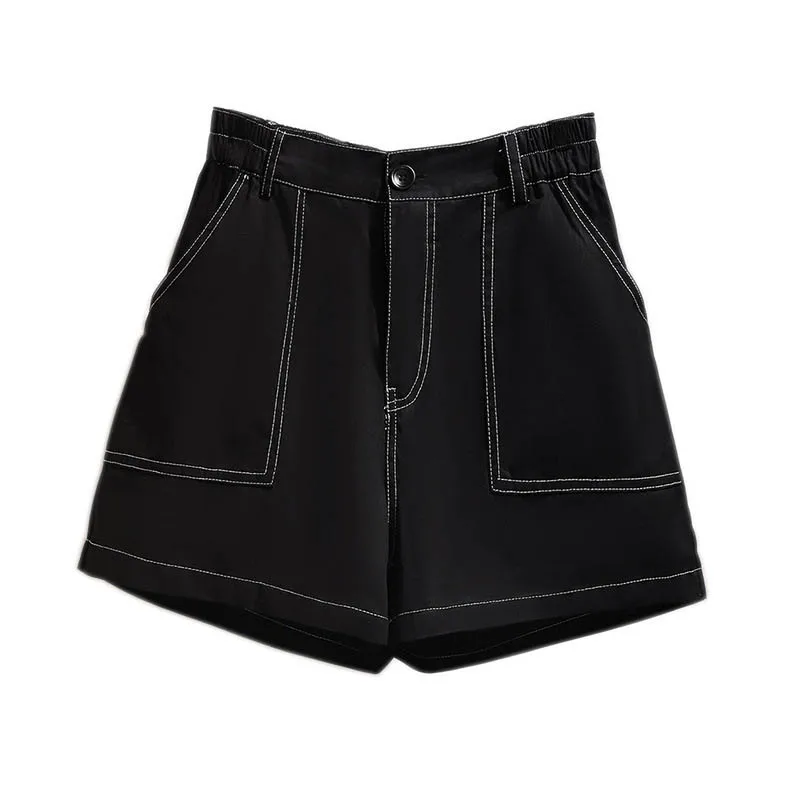 150Kg Plus Size Women’s Summer Topline Denim Shorts Loose Elastic Waist Wide Leg Hot Pants Black Hip 152 5XL 6XL 7XL 8XL 9XL