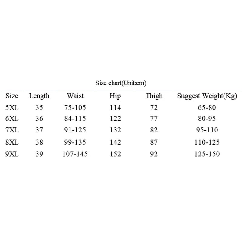{"sizeInfoList":[{"length":{"cm":"75-105","inch":"29.53-41.34"},"size":"5XL 65-80KG","vid":-1},{"length":{"cm":"84-115","inch":"33.07-45.28"},"size":"6XL 80-95KG","vid":-2},{"length":{"cm":"91-125","inch":"35.83-49.21"},"size":"7XL 95-110KG","vid":-3},{"length":{"cm":"99-135","inch":"38.98-53.15"},"size":"8XL 110-125KG","vid":-4},{"length":{"cm":"107-145","inch":"42.13-57.09"},"size":"9XL 125-150KG","vid":-5}]} |