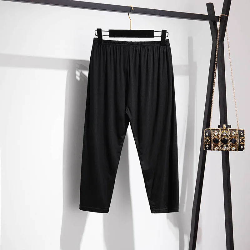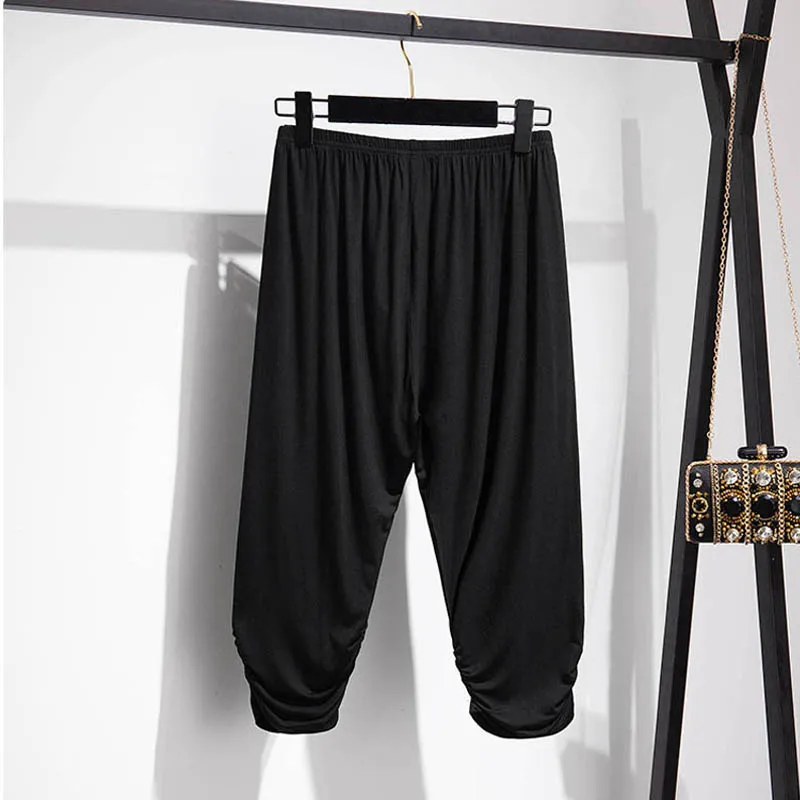 165Kg Plus Size Women’s Summer Loose High-Waist Bottoming Cropped Trousers 5XL 6XL 7XL 8XL 9XL Thin Slimming Leggings Black