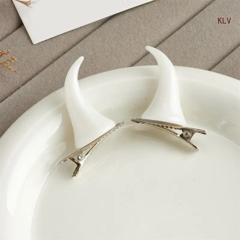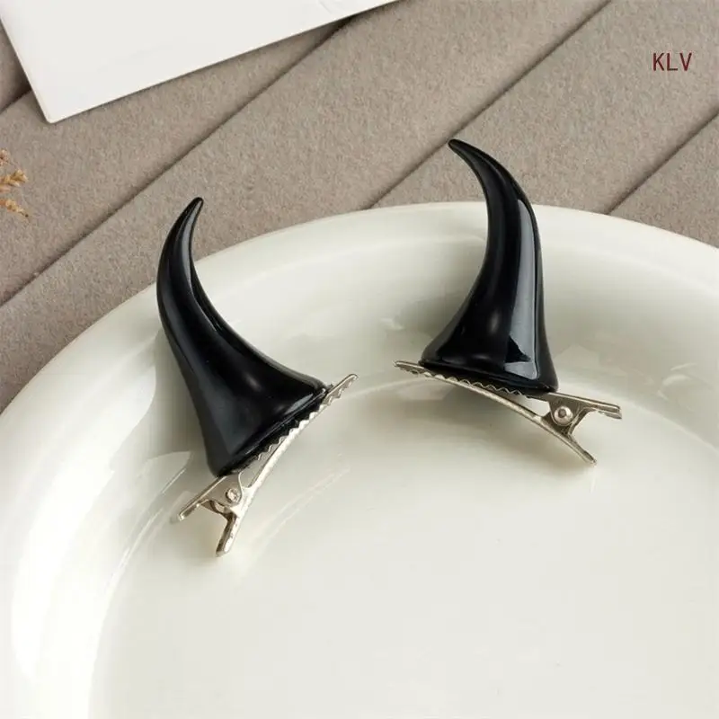 1pair Horn Hairpins Hot Girl Goth Duckbills Hair Clip Halloween Goth Ponytail Braids Hair Clip for Woman