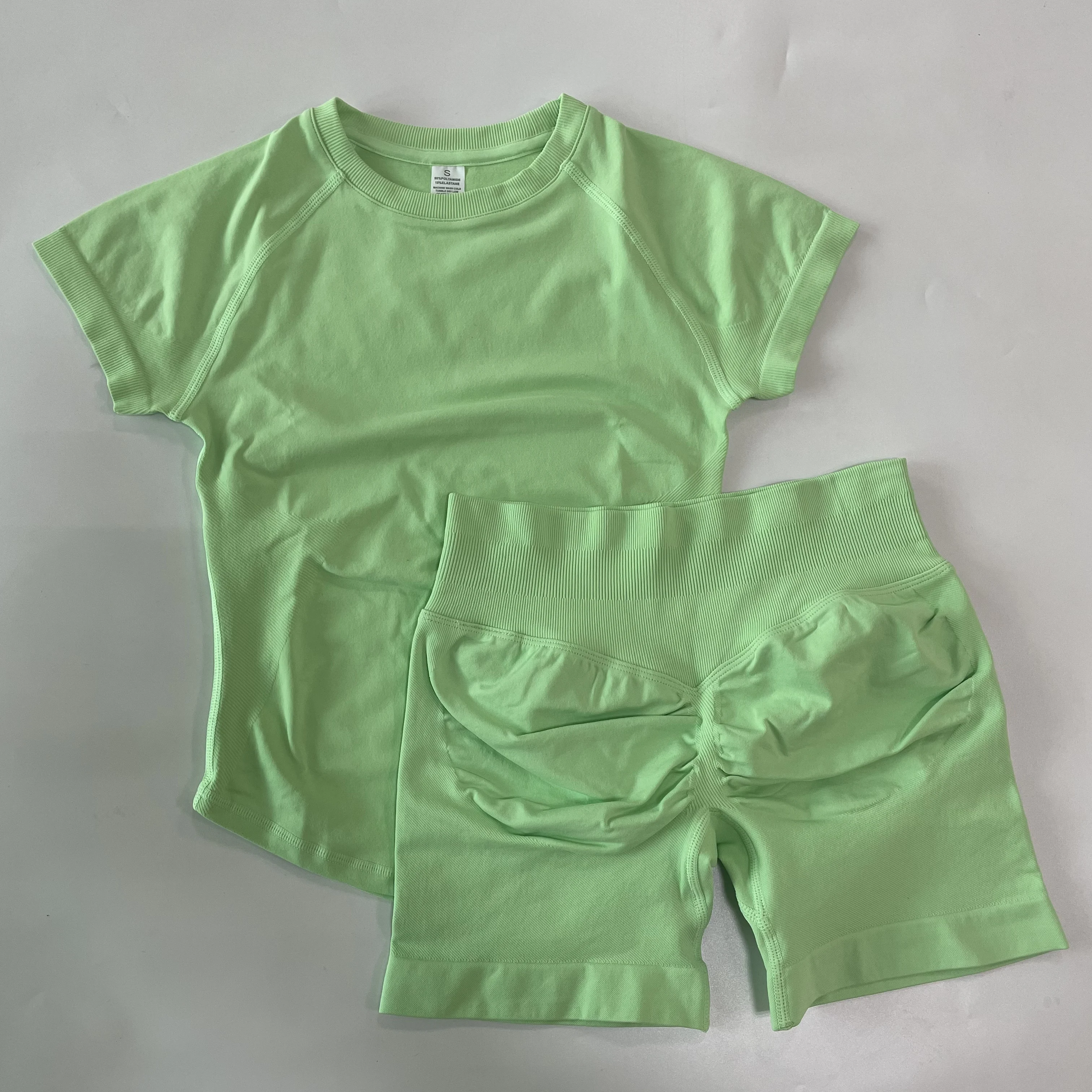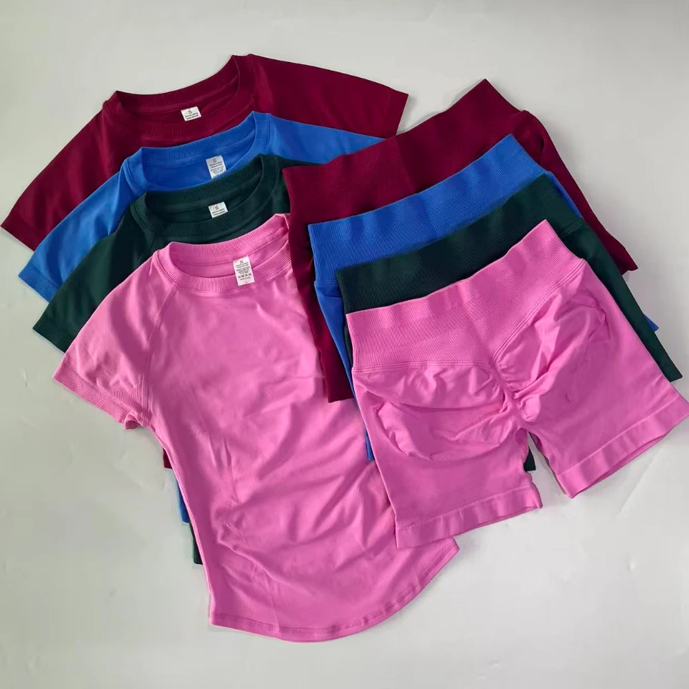 2 Piece Sets Women Outfit Longline Short Sleeve Gym Crop Top High Waist Workout Shorts Sports Suit Fitness Clothes Yoga Set