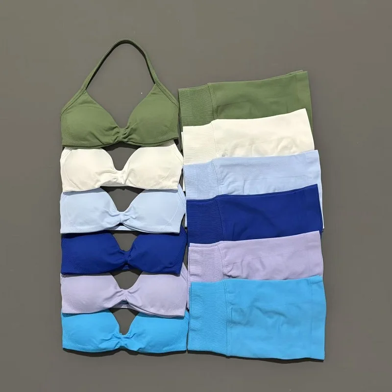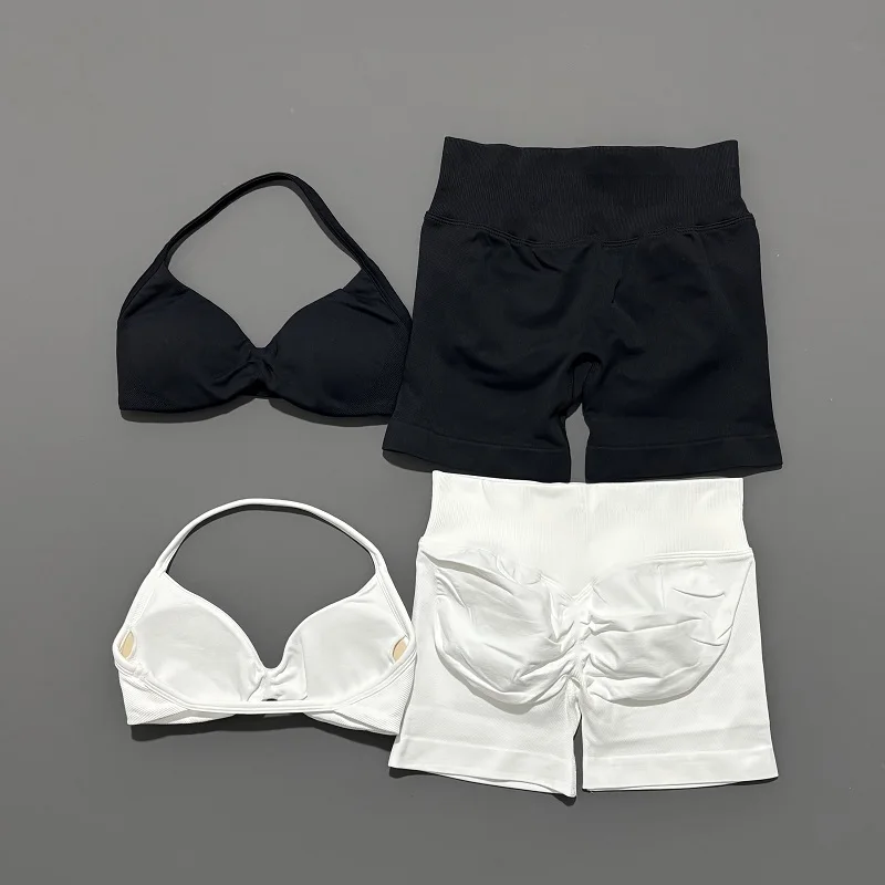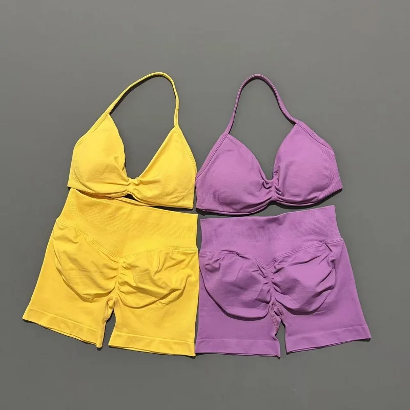 2 Piece Sports Gym Set Strappy Bra Yoga Underwear Short Sport Leggings Bicycle Running Sportswear Woman Seamless Yoga Set
