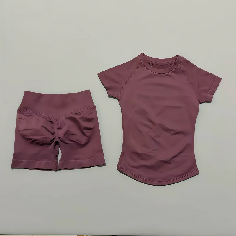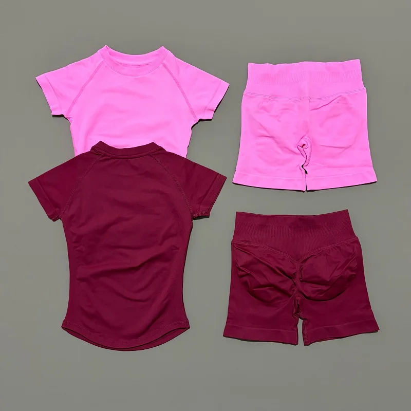 2 Pieces Impact Gym Sets Women Seamless knitted Yoga Short Sleeve Top Fitness Set Workout Running Sports Short Leggings Suit
