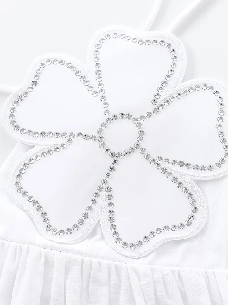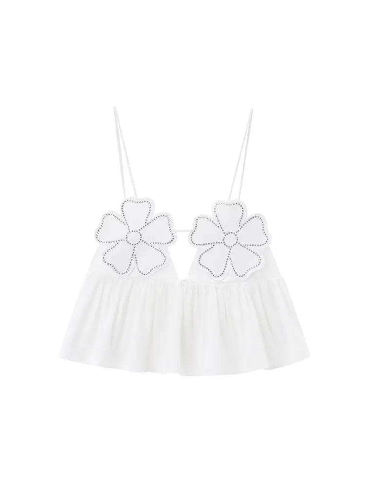 20025 Women Fashion Rhinestone Floral Poplin Tank Tops Sexy Backless Tied Thin Straps Female Female Camis Top Mujer
