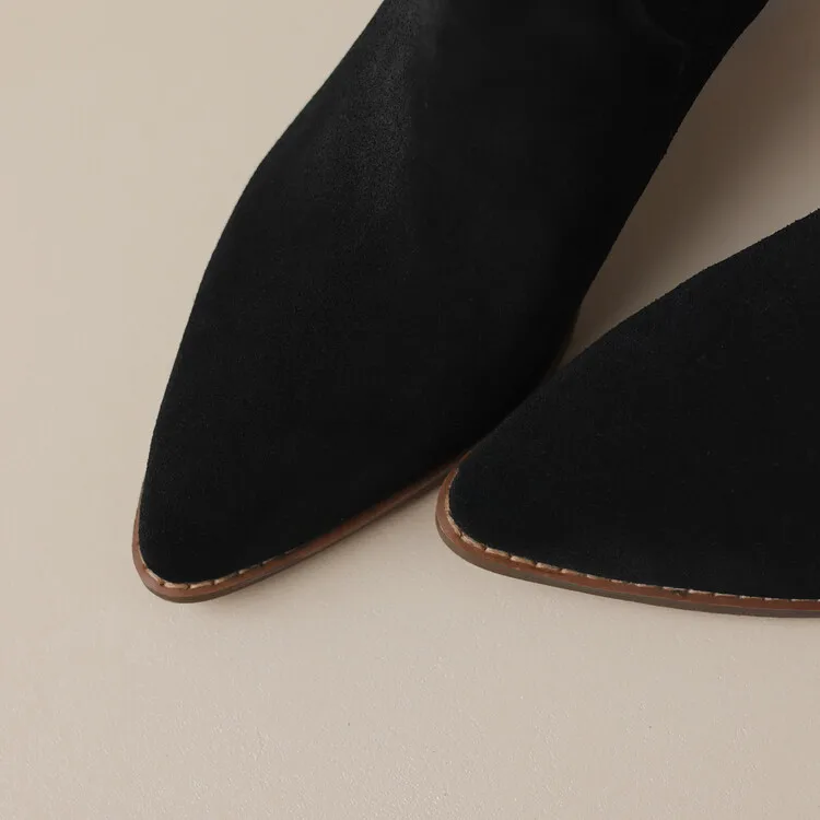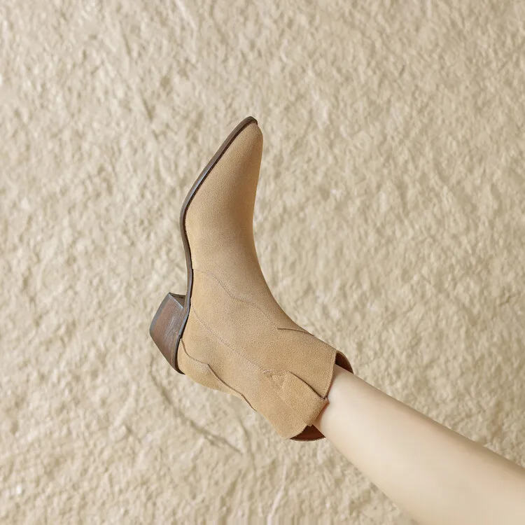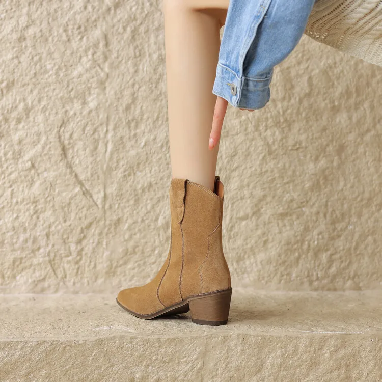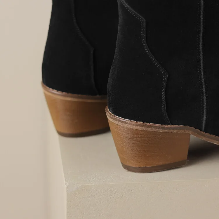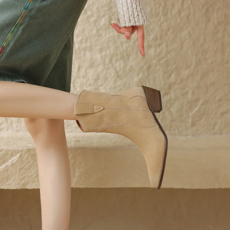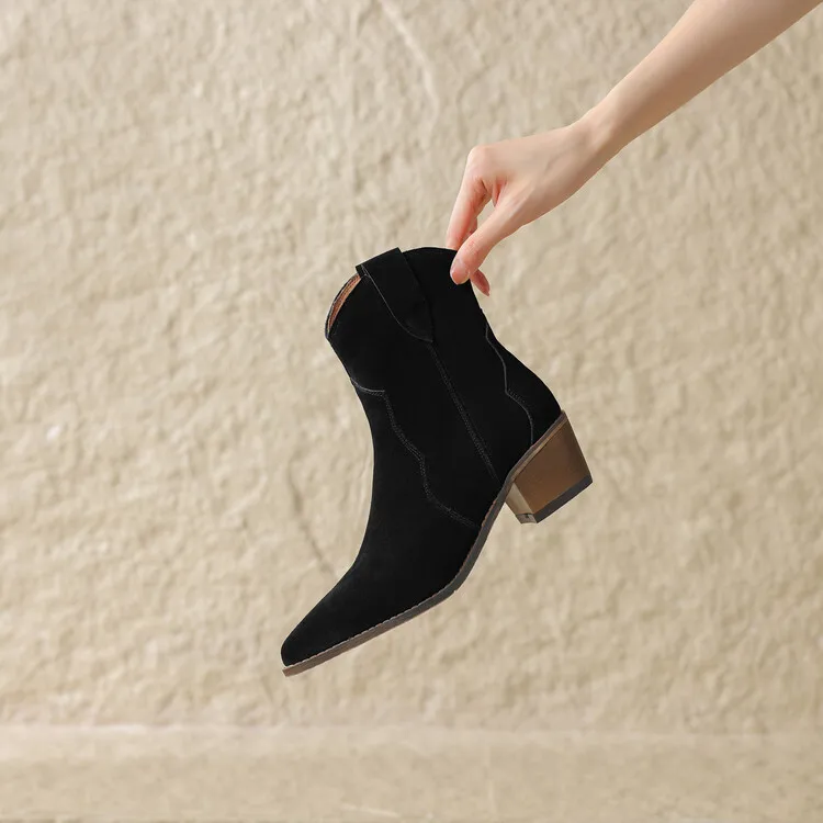 2023 Autumn Cow Suede Women Boots Pointed Toe Chunky Heel Boots for Women Fashion Short Boots Winter Boots Women Western Boots