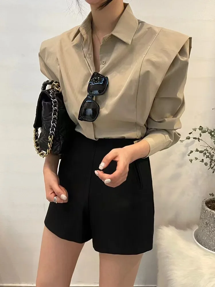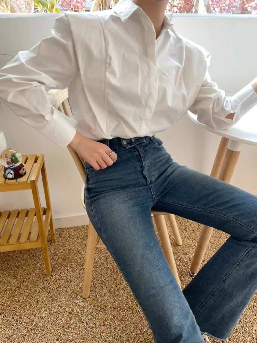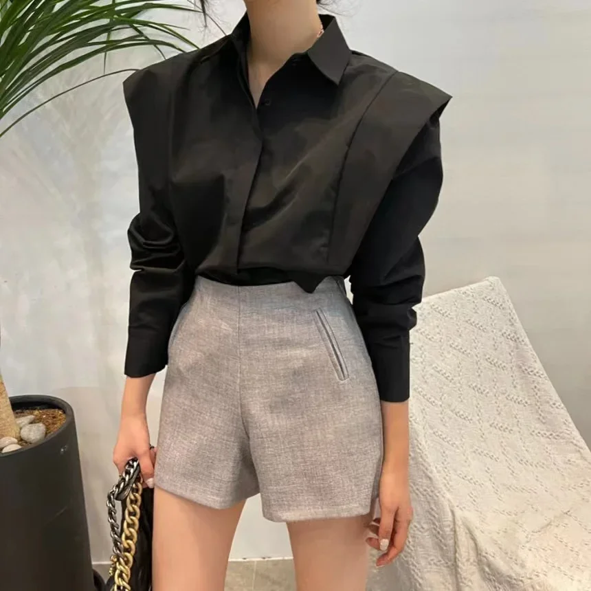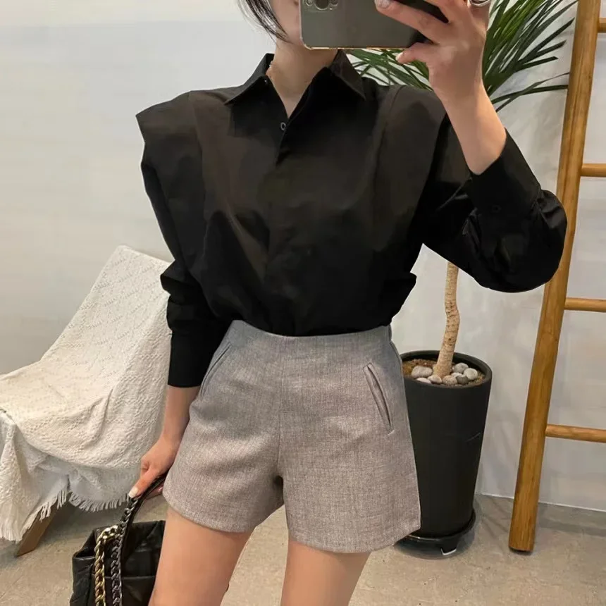 2023 Spring Women Blouses Fashion Vintage Simple Closure Panel Ruffles Long Sleeve Leisure Solid Korean Edition Women’s Shirt