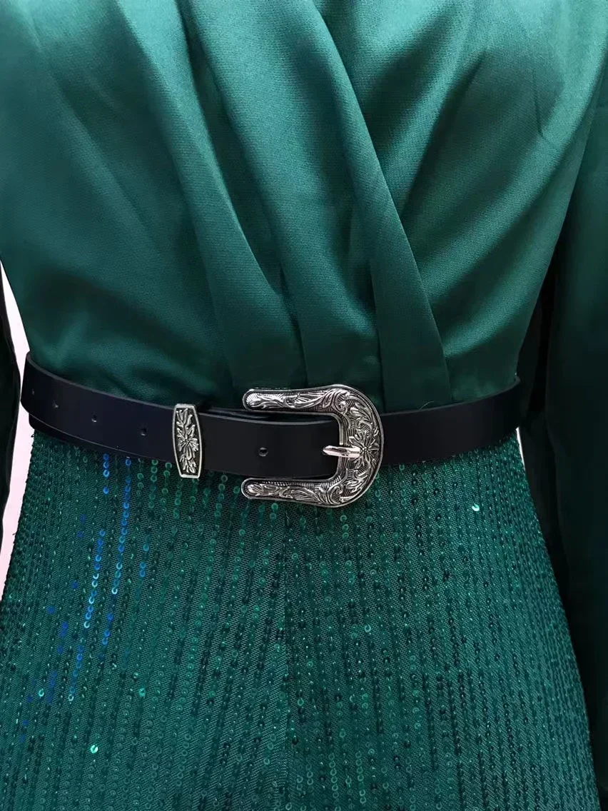 2024 Autumn Evening Party Jumpsuit Women Long Sleeve Solid Sequin V-Neck High Waist Fashion Leg Pants Elegant Chic Spring Shirt