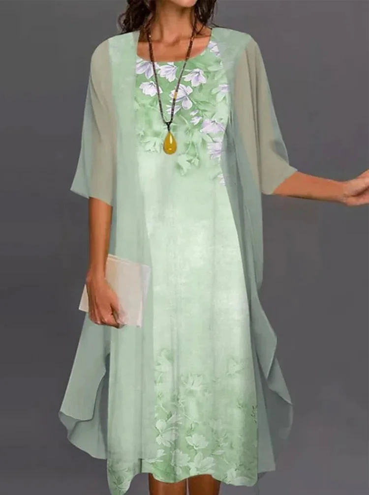 2024 Europe and the United States summer women’s casual dress two-piece floral print round collar repair maxi