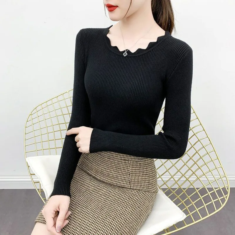2024 Fashion Long Sleeve Elegant O-neck Women Sweater Autumn Solid Slim Knitted Tops Winter Casual Pullover Jumper