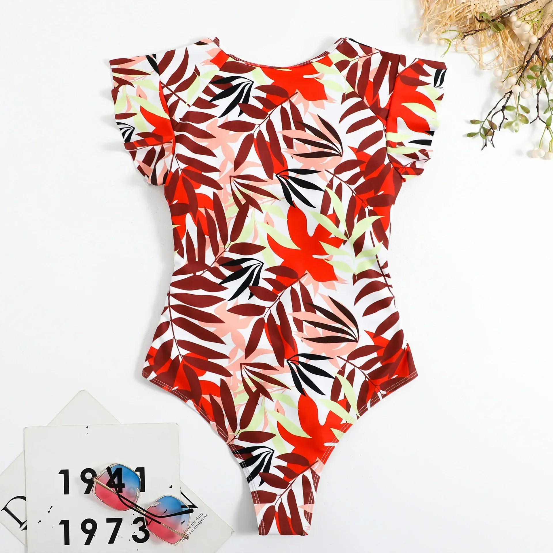 2024 Fashion Short Dress One-piece Swimsuit Zipper Swimsuit Sexy Bikini Women’s Thickened Printed Swimming Beach Wear Summer