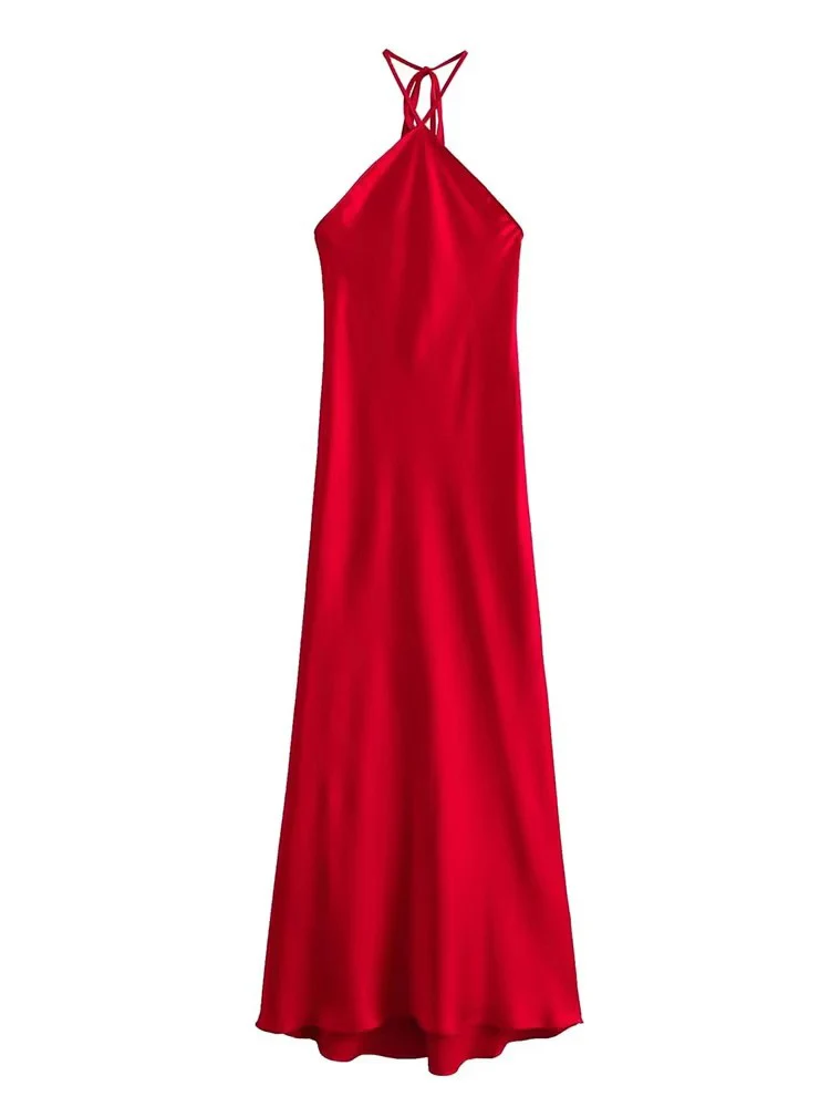 2024 Halter Long Dresses for Women Backless Satin Dress Woman Off Shoulder Sexy Midi Dresses Elegant Evening Party Dress