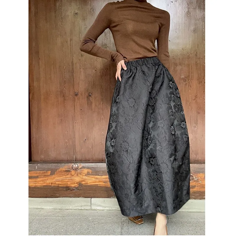 2024 New Arrival Spring/summer Arts Style Women Casual Loose Fit Elastic Waist A-line Jacquard Design Ankle-length Skirt P02