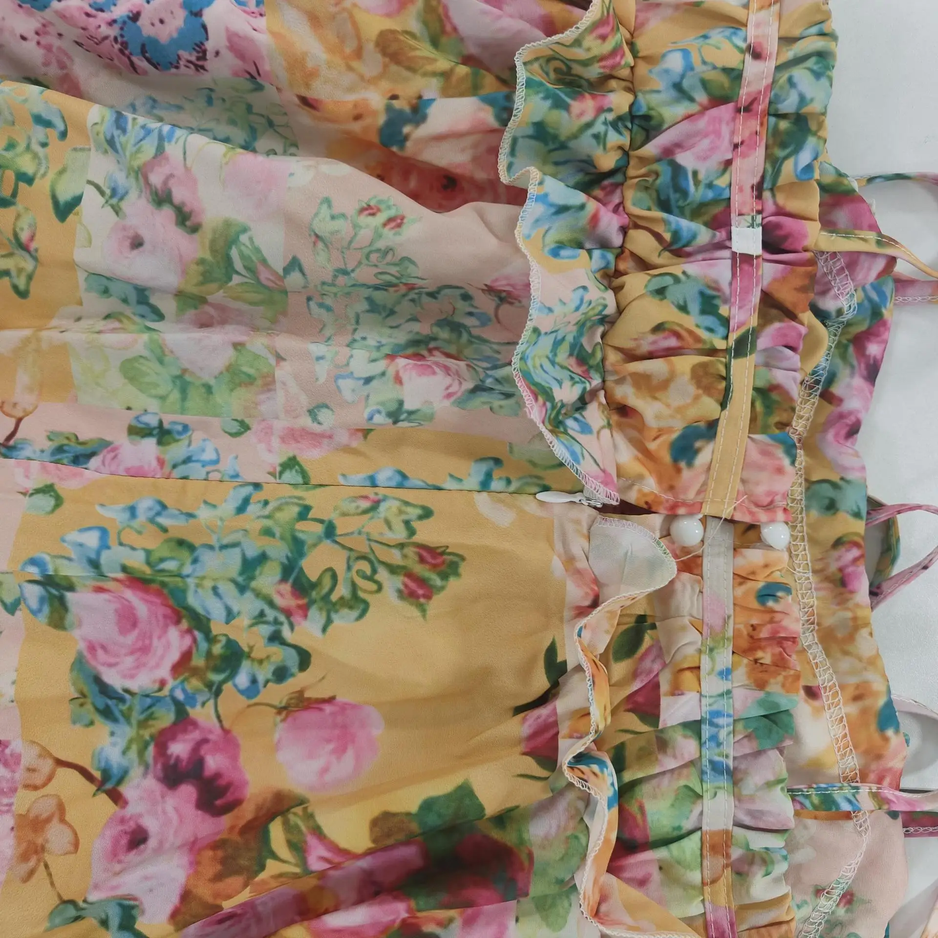 2024 Summer Holiday Bow Ruched Flower Print Suspenders Mini Dress Plus Size S-3XL Women Backless Lacing up Sling Beach Vestidos