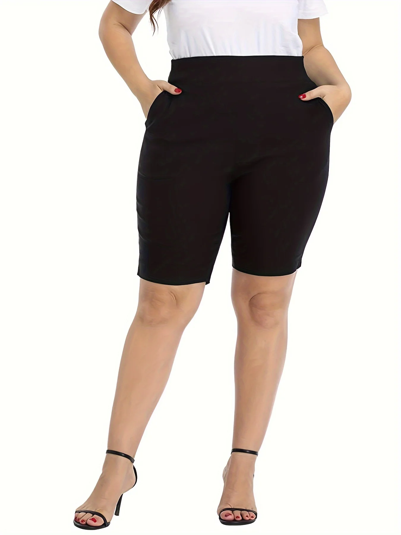2024 summer new women’s plus-size extreme waist-hip ratio style solid color slim-fit shorts