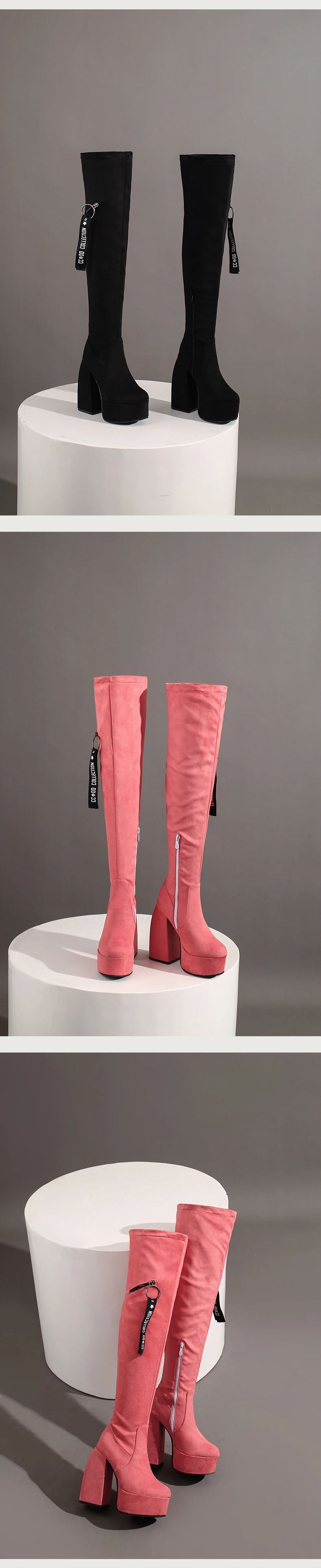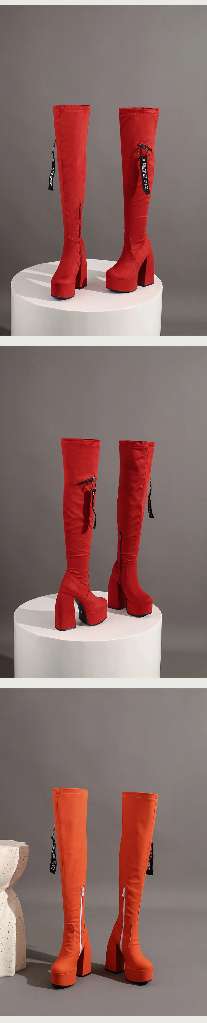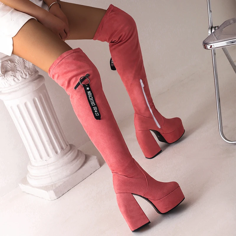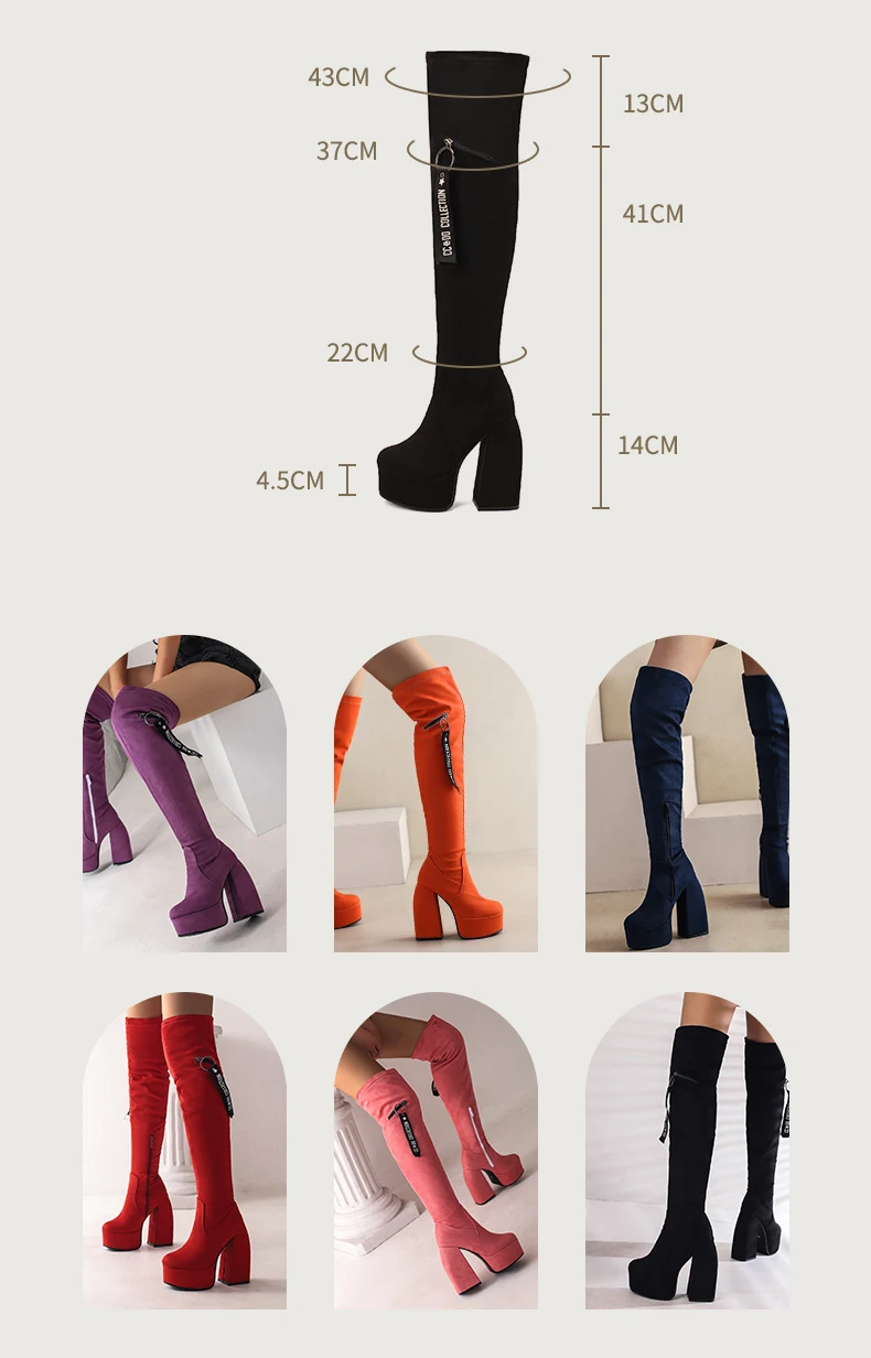 Ultra-High Profiled Hollow Thick Heel Frosted Flock Women’s Over-The-Knee Boots Plus Size High Platform Zipper Winter Long Boots