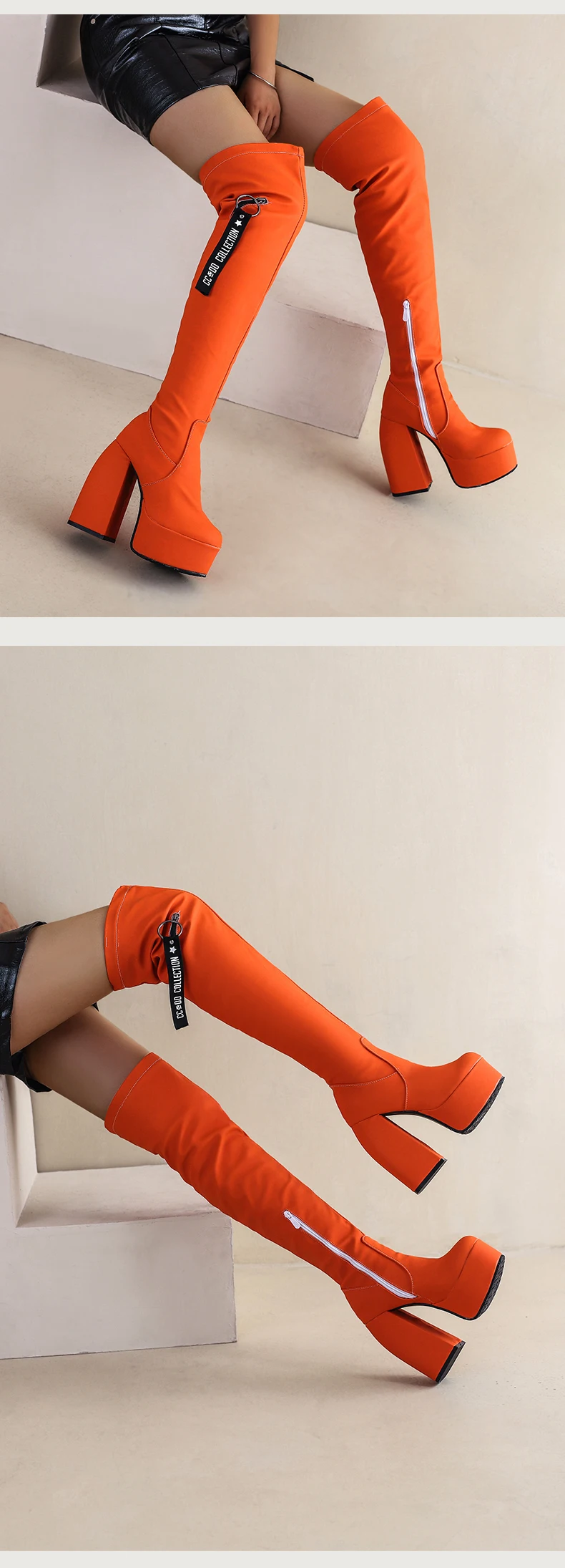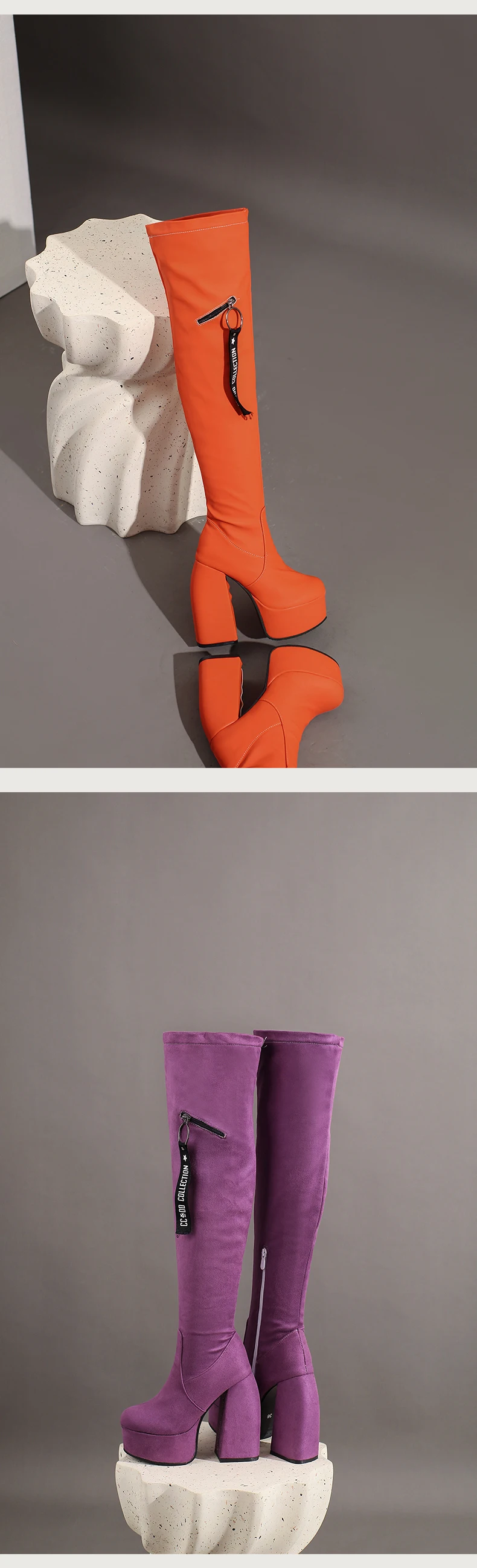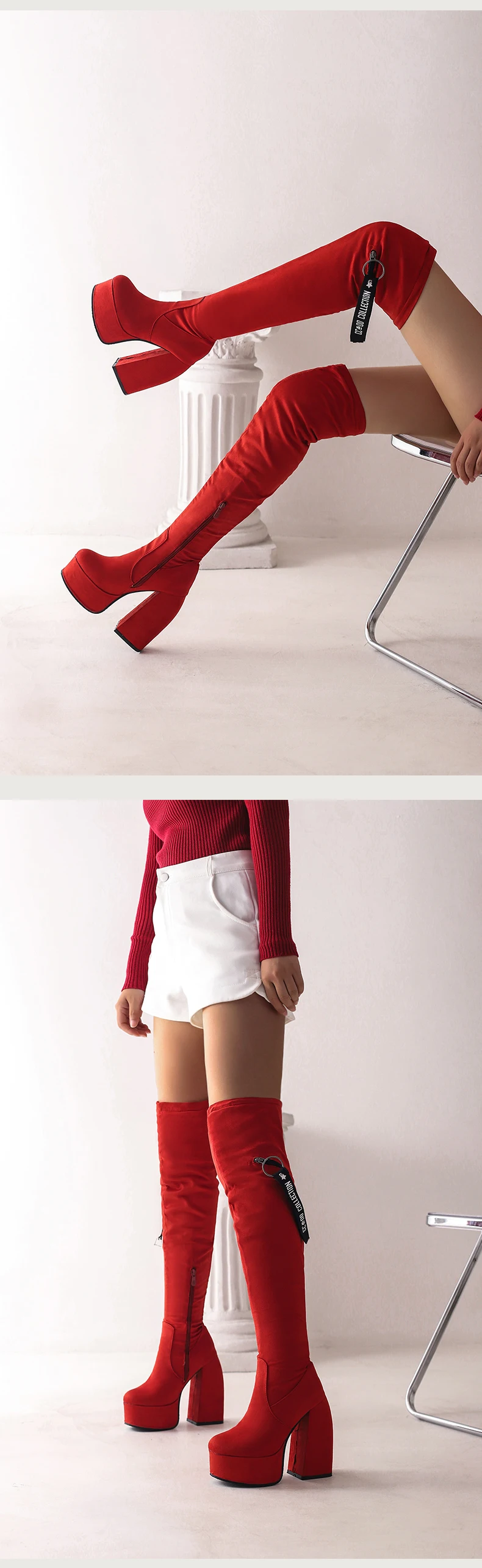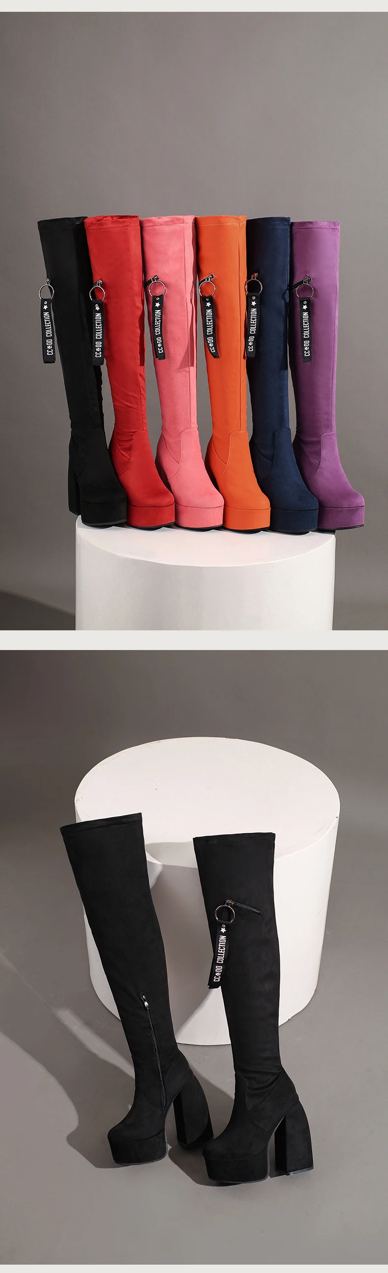 Ultra-High Profiled Hollow Thick Heel Frosted Flock Women’s Over-The-Knee Boots Plus Size High Platform Zipper Winter Long Boots