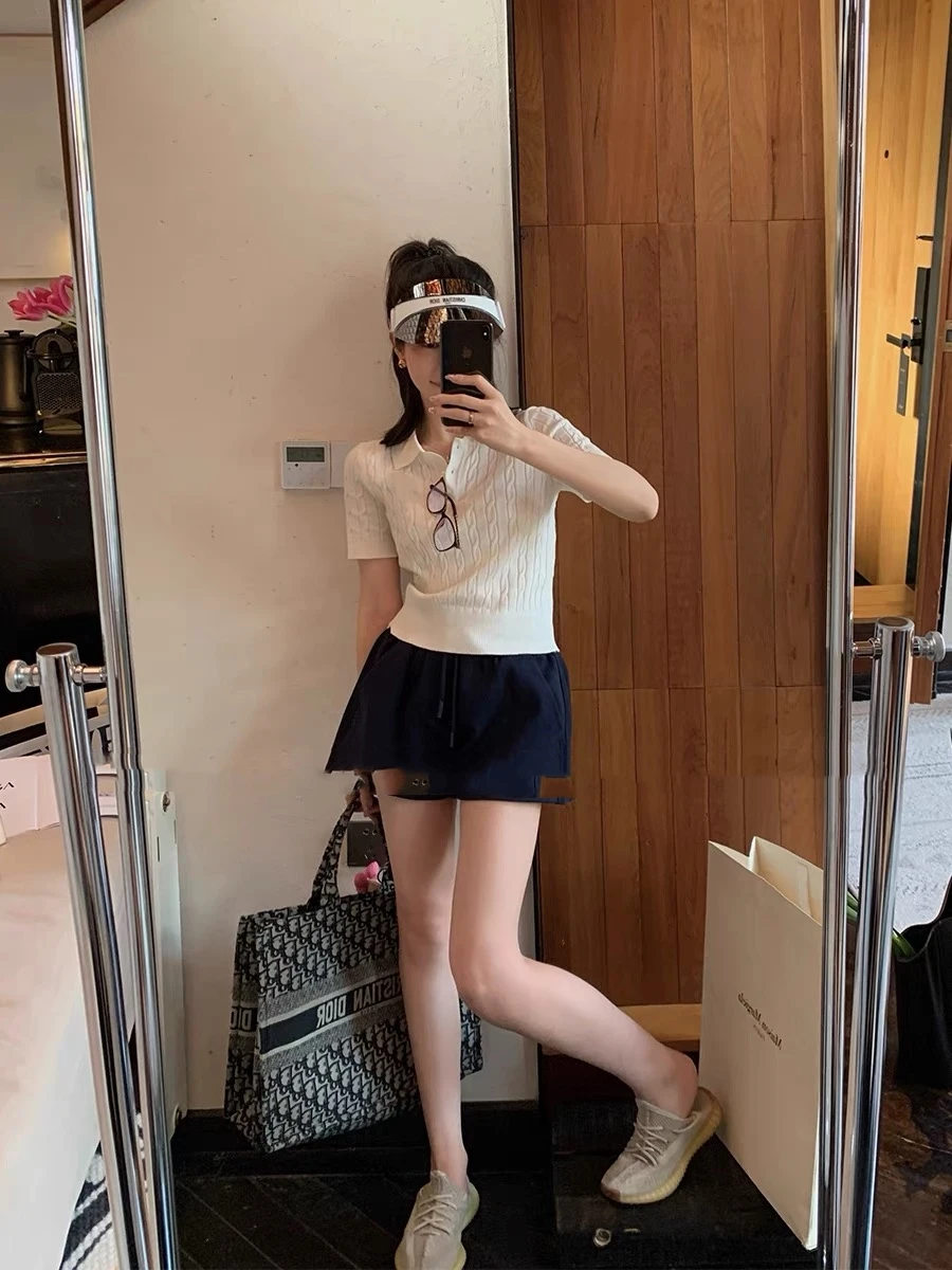 2024 Women’s Summer T-shirt Fashion Top Elegant Short Sleeve Classic Fried Dough Twists POLO Collar College Fashion Top