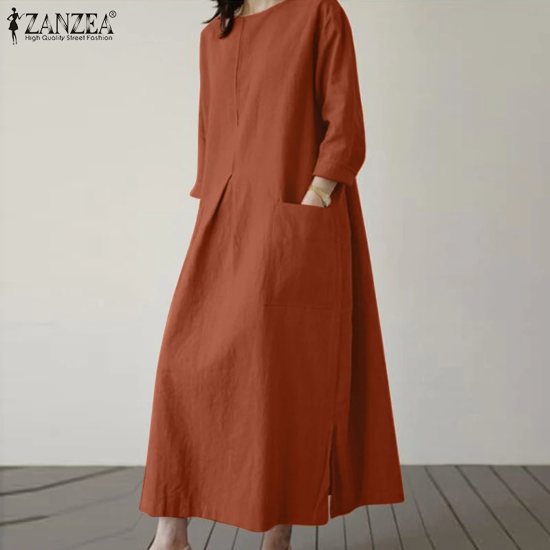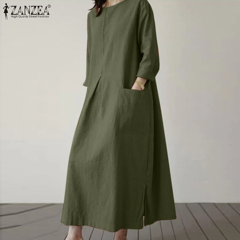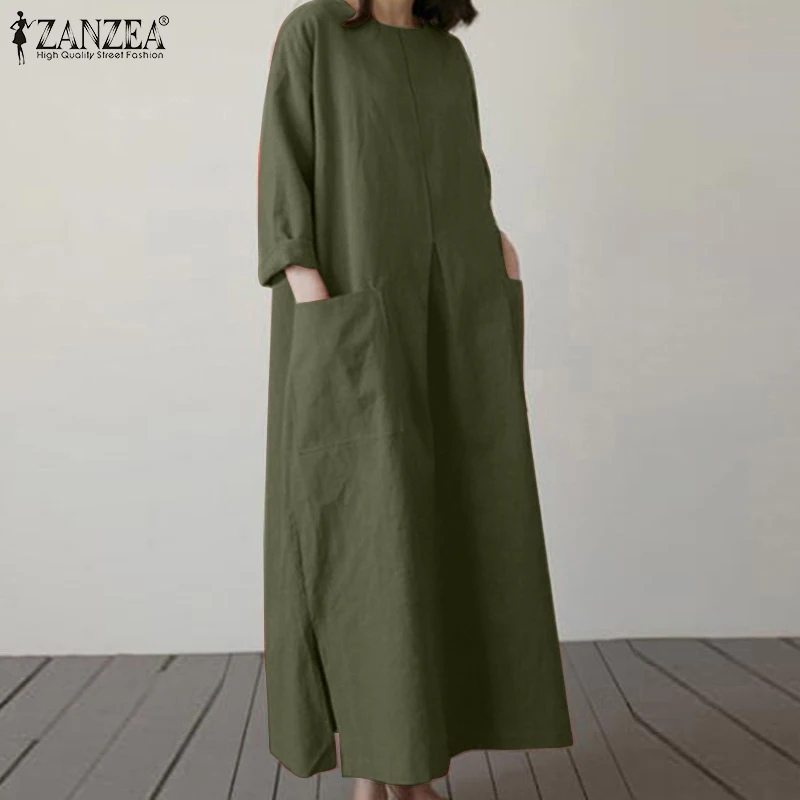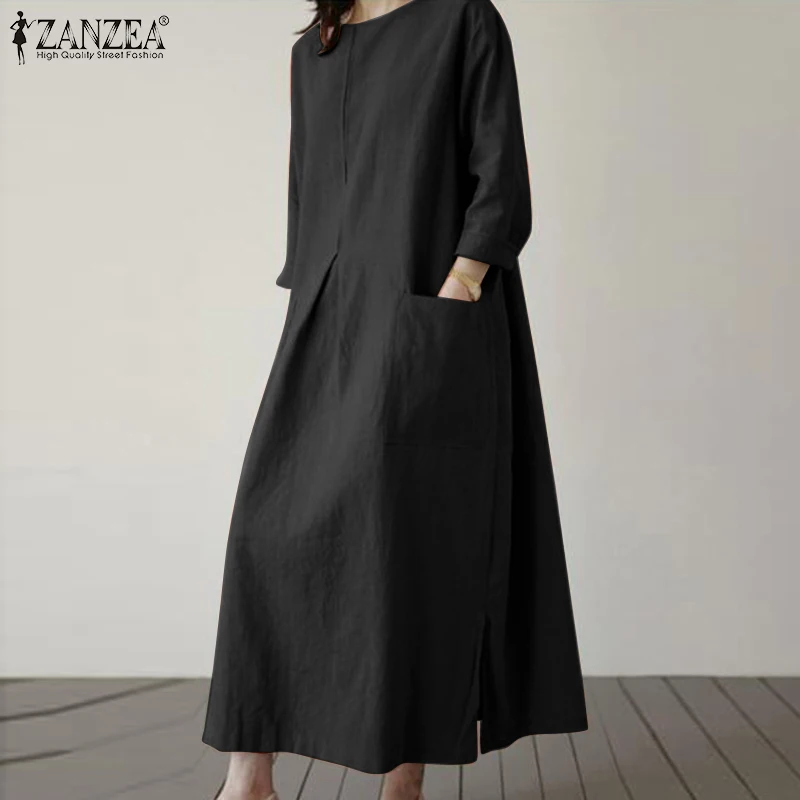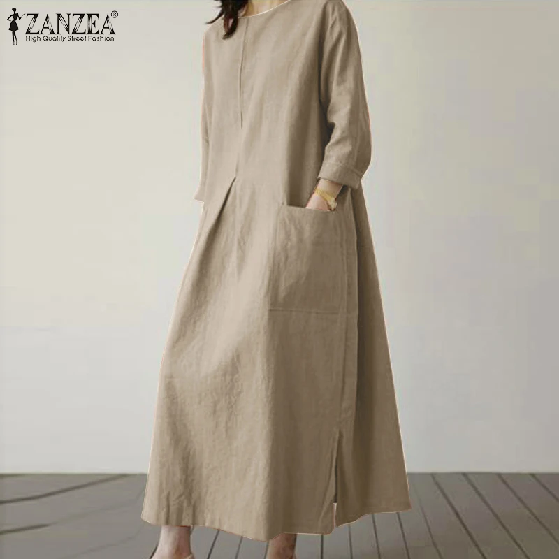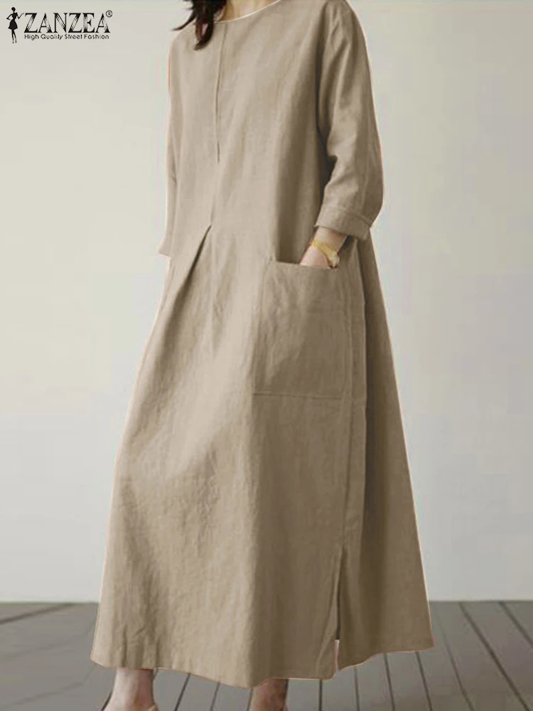 2024 ZANZEA Fashion Summer Vintage Women Solid 3/4 Sleeve Sundress Baggy Loose Casual Dress Oversize Vestidos Kaftan Robe Femme
