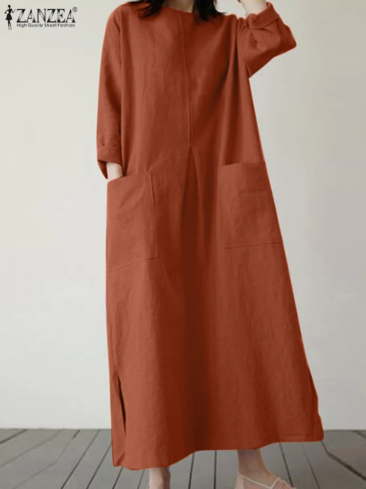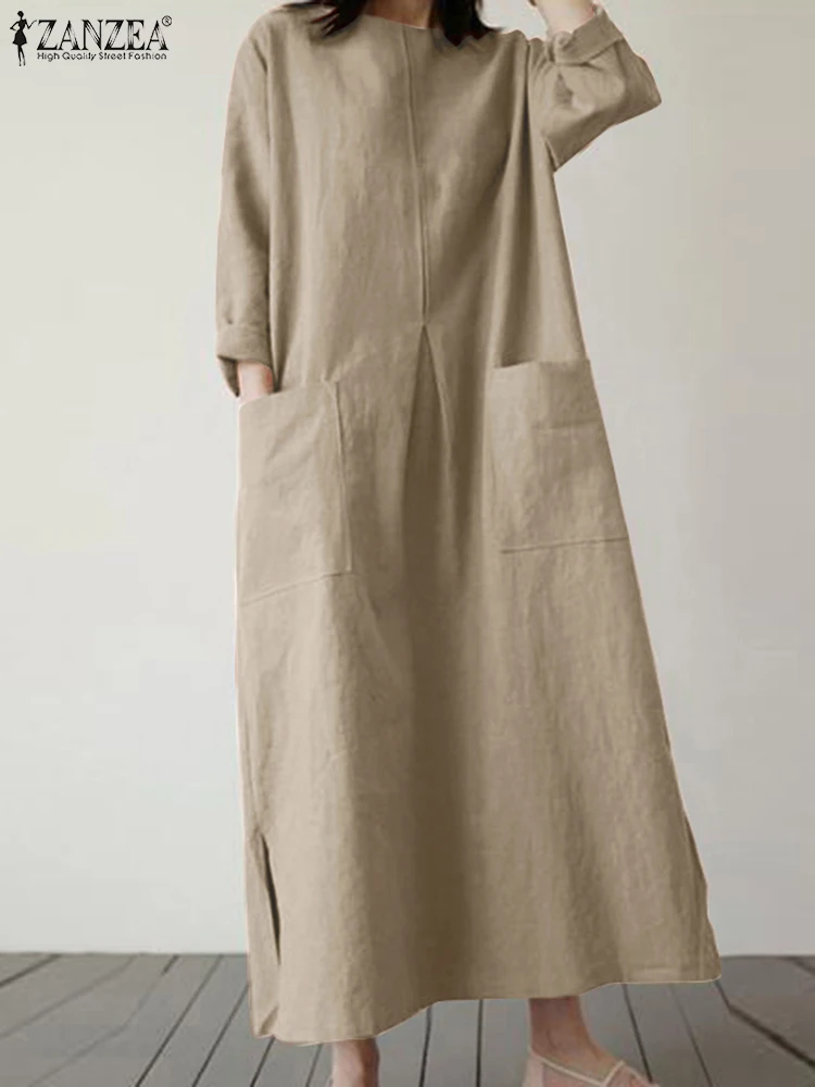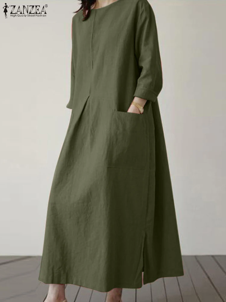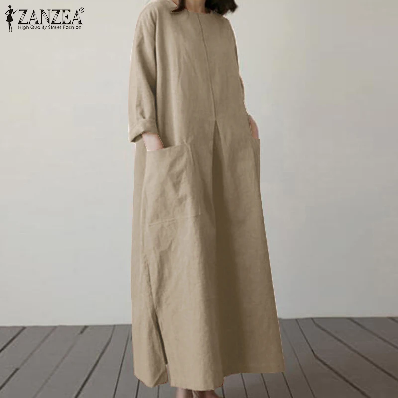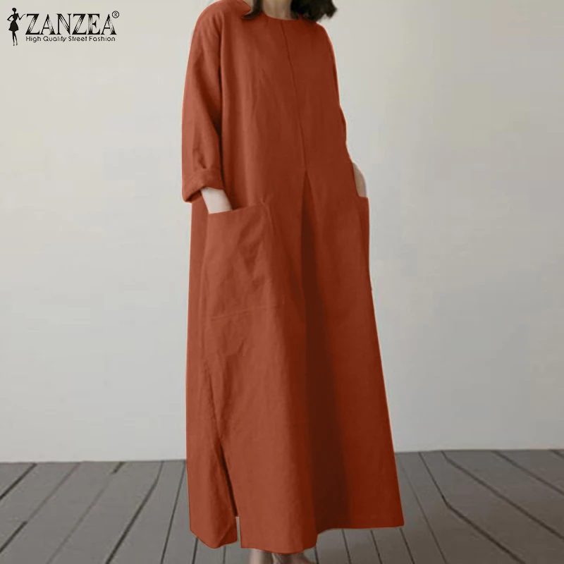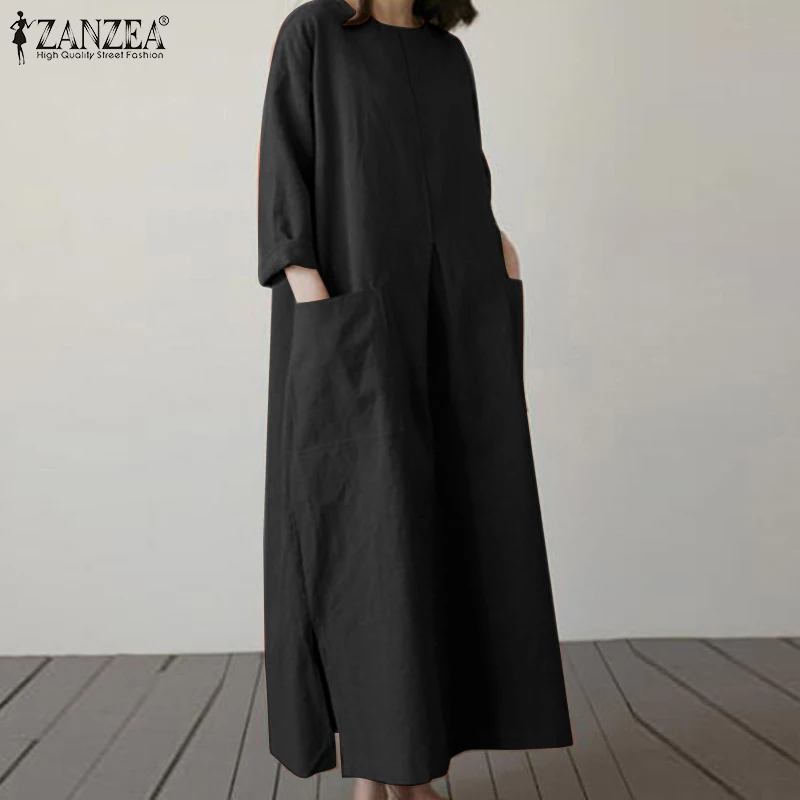 2024 ZANZEA Fashion Summer Vintage Women Solid 3/4 Sleeve Sundress Baggy Loose Casual Dress Oversize Vestidos Kaftan Robe Femme