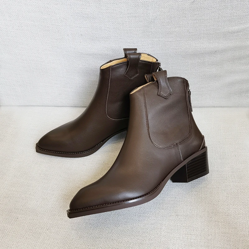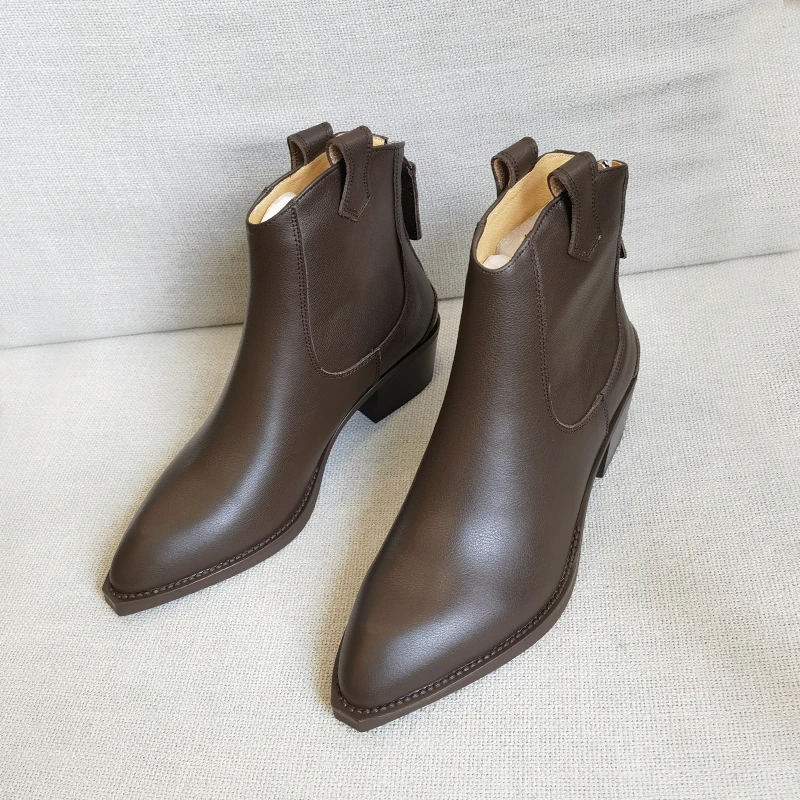 2025 Autumn Classic Chelsea Boots for Woman Genuine Leather Pointy Toe Wedge Heel Ankle Boots Simple Comfortable Cowboy Boots