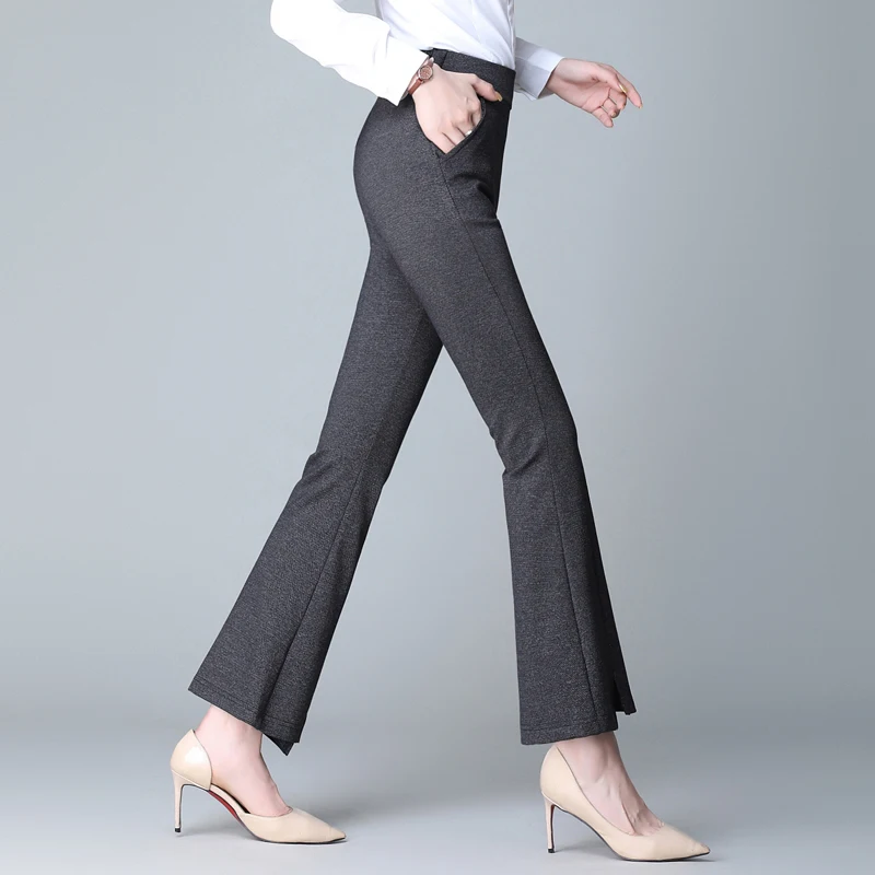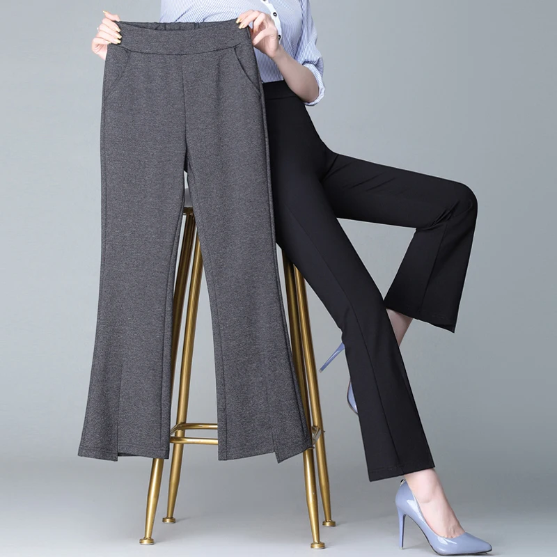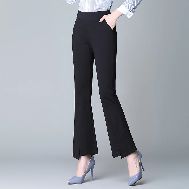 2025 Black Slim Stretch Flared Pants for Women in Spring and Autumn High Waist and Slim Flared Pants Thin Split Flared Pants in