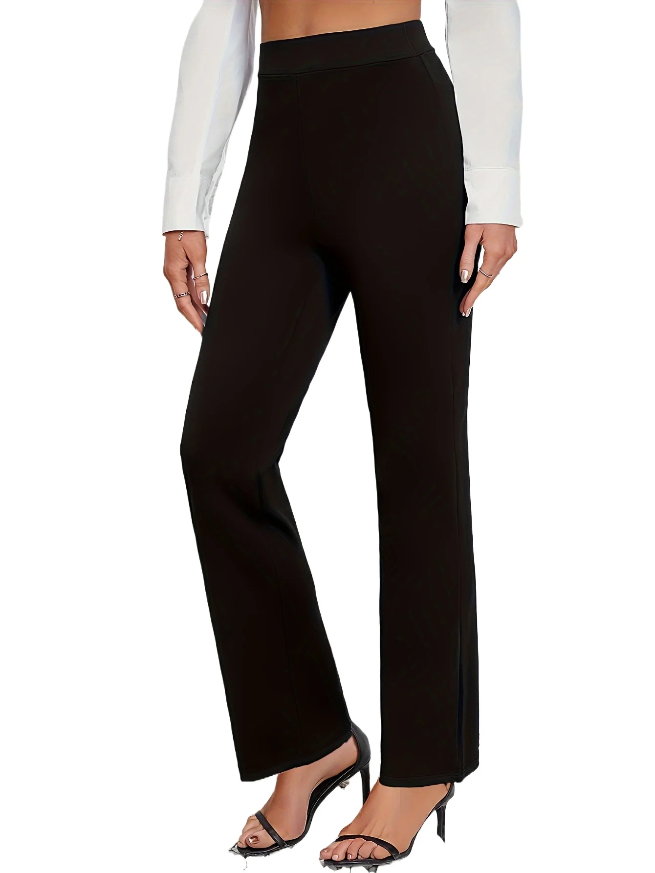 2025 Casual Elegant Slim Straight Pants Women Elastic Waist Stretchy Slimming Black Daily Office Trousers