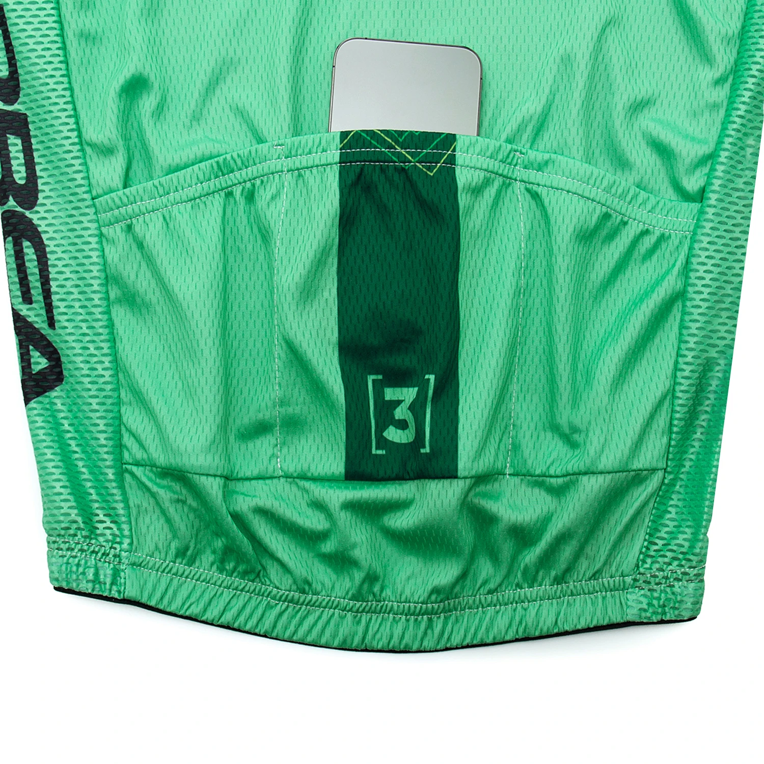 There are 3 pockets on the back of bike jersey to take Phone, Water,etc.
