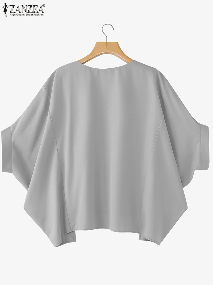 2025 Elegant Tunic Fashion Half Sleeve Women Tops ZANZEA Casual Loose Bat-wing Sleeve O Neck Blusas Solid Color Pullover