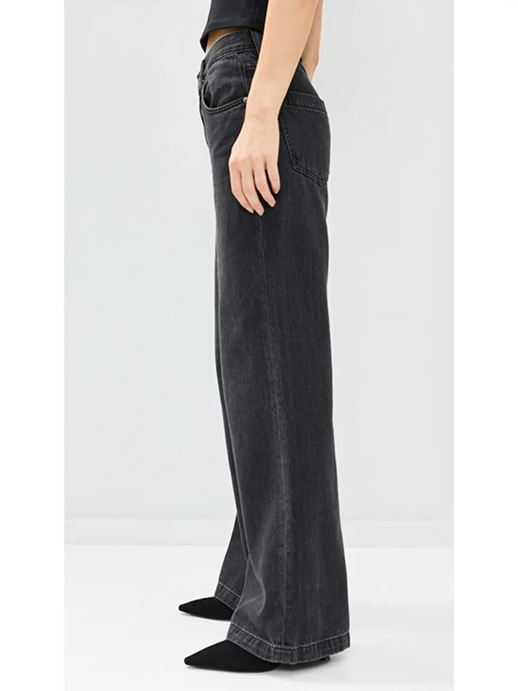 2025 Female Straight Leg Jeans Women Low Rise Stretch Gray Denim Pants Lady Solid Color Daily Office Cheap Long Jeans Trousers