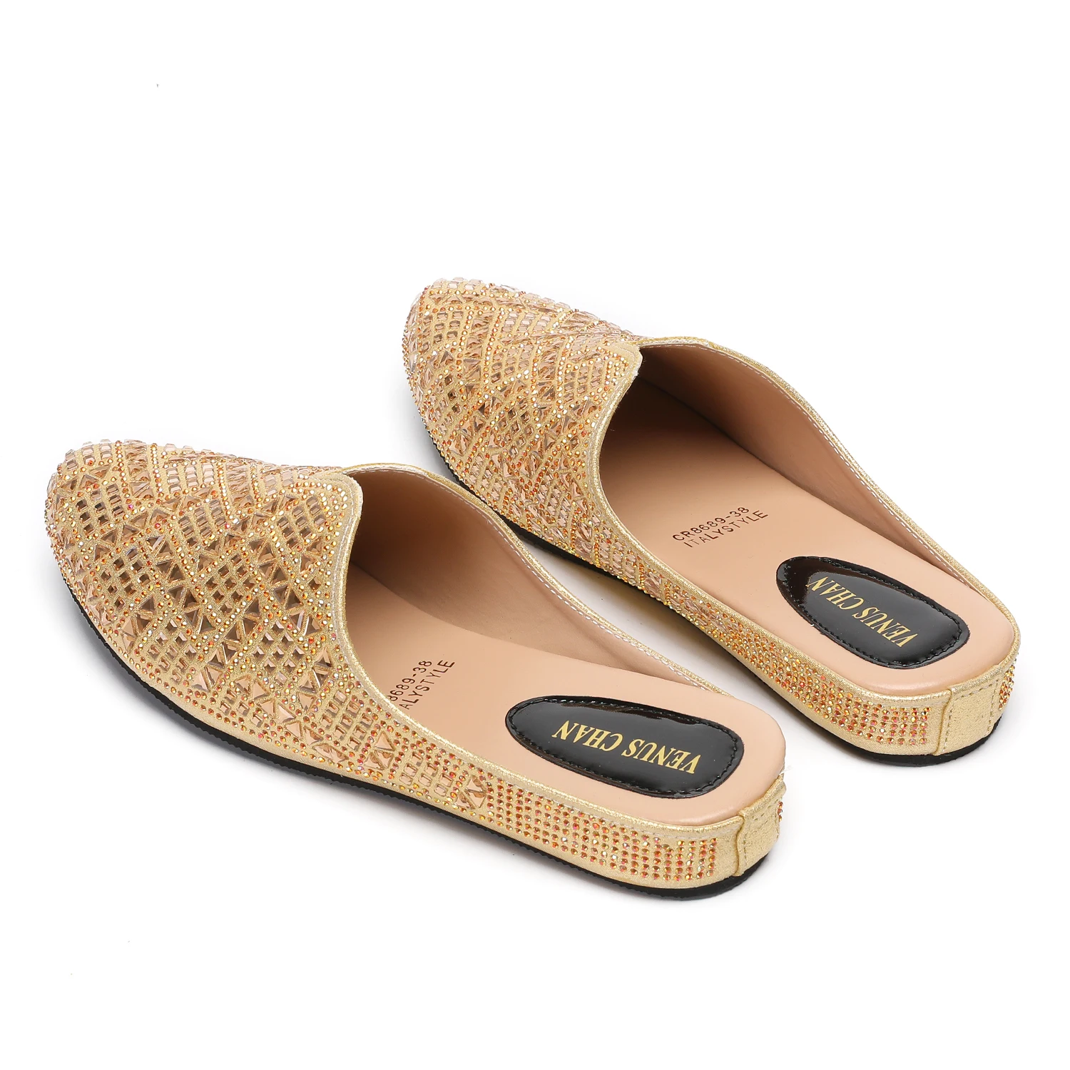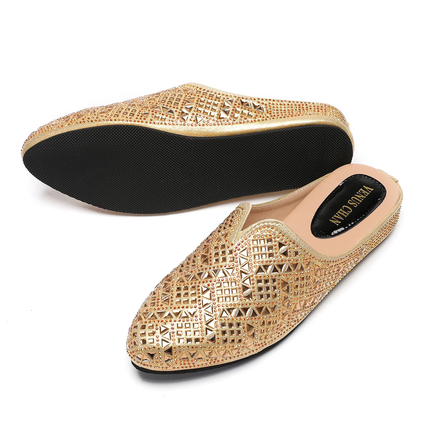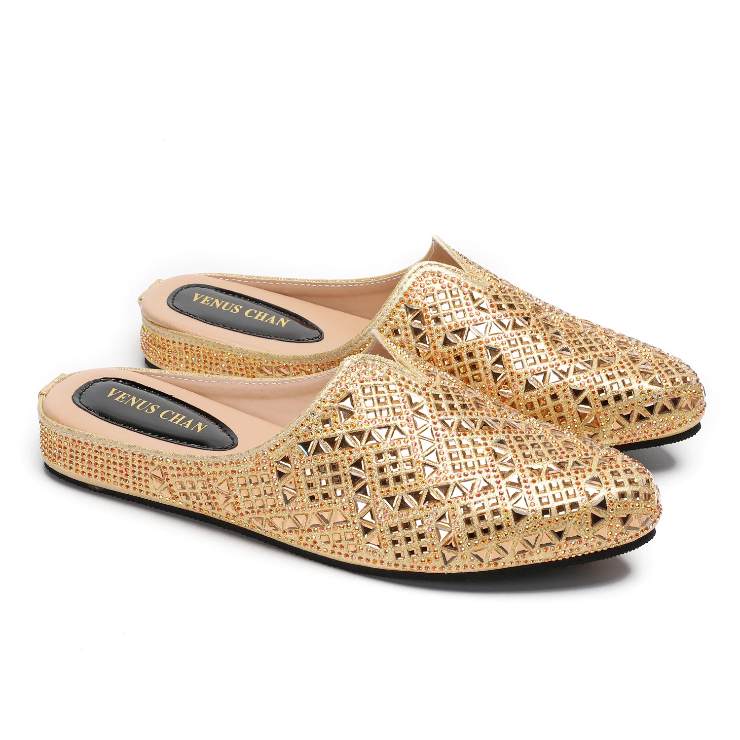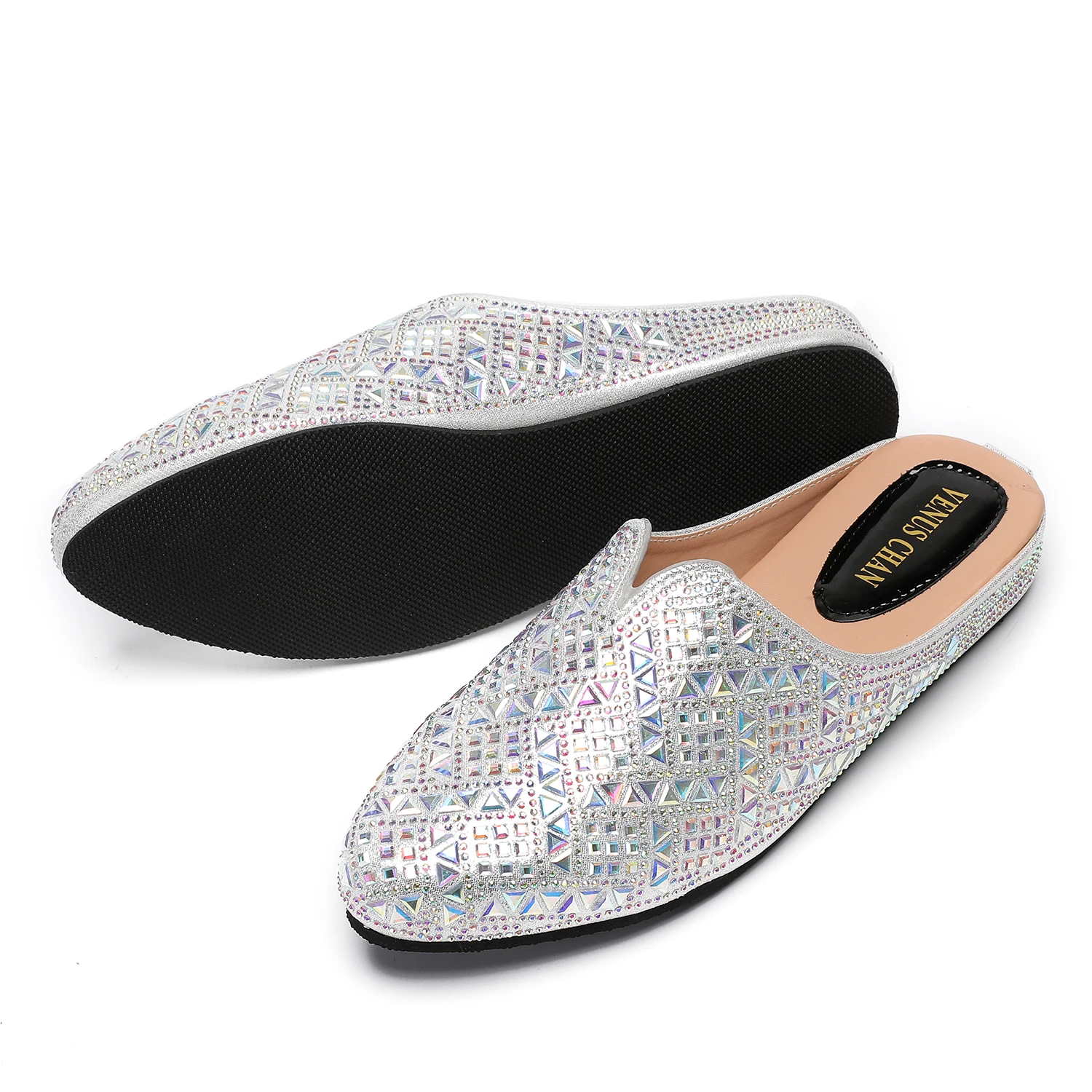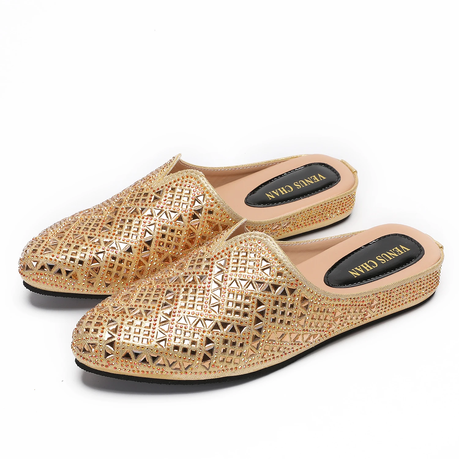 2025 Latest Design Nigeria Silver Color Half Shoes Elegant Flat Shoes for Woman Fashion Comfortable Party Slippers