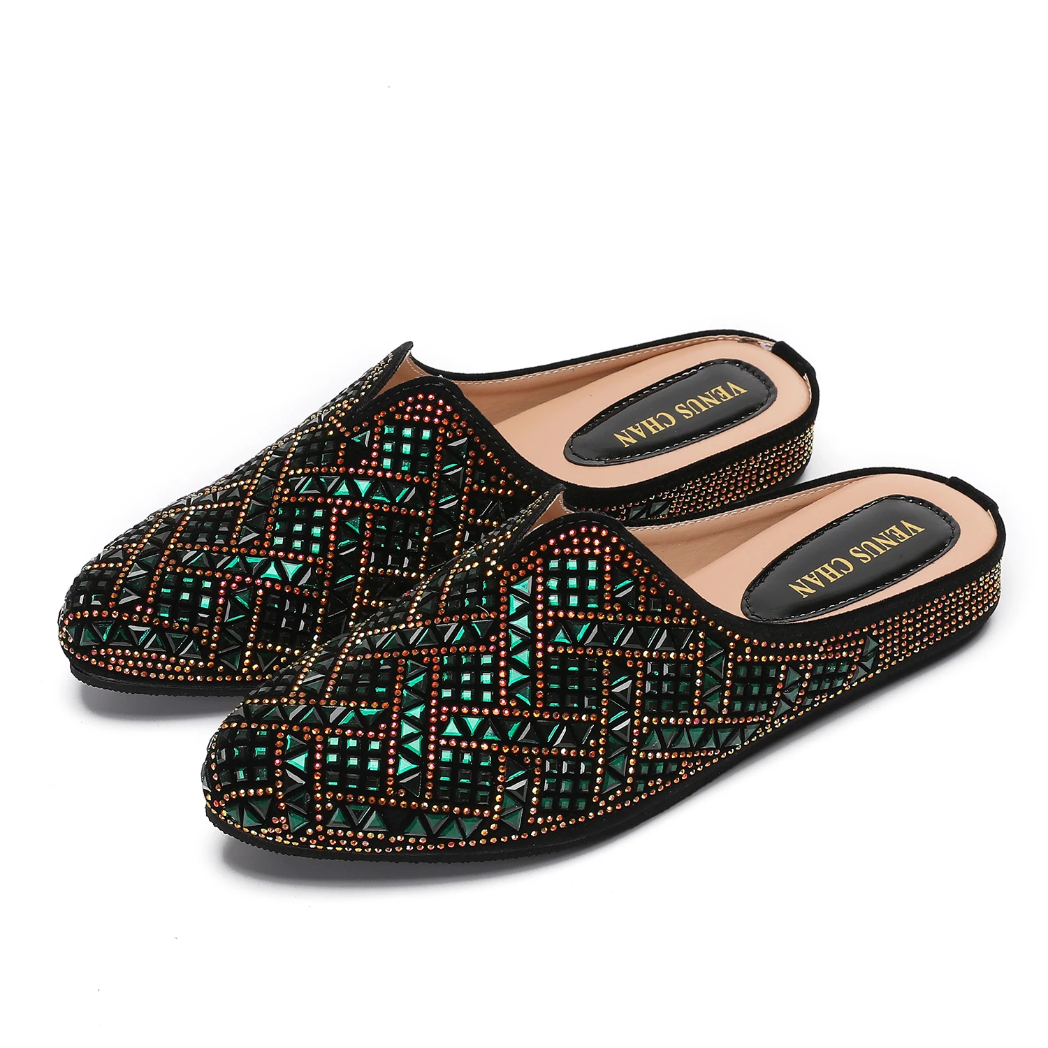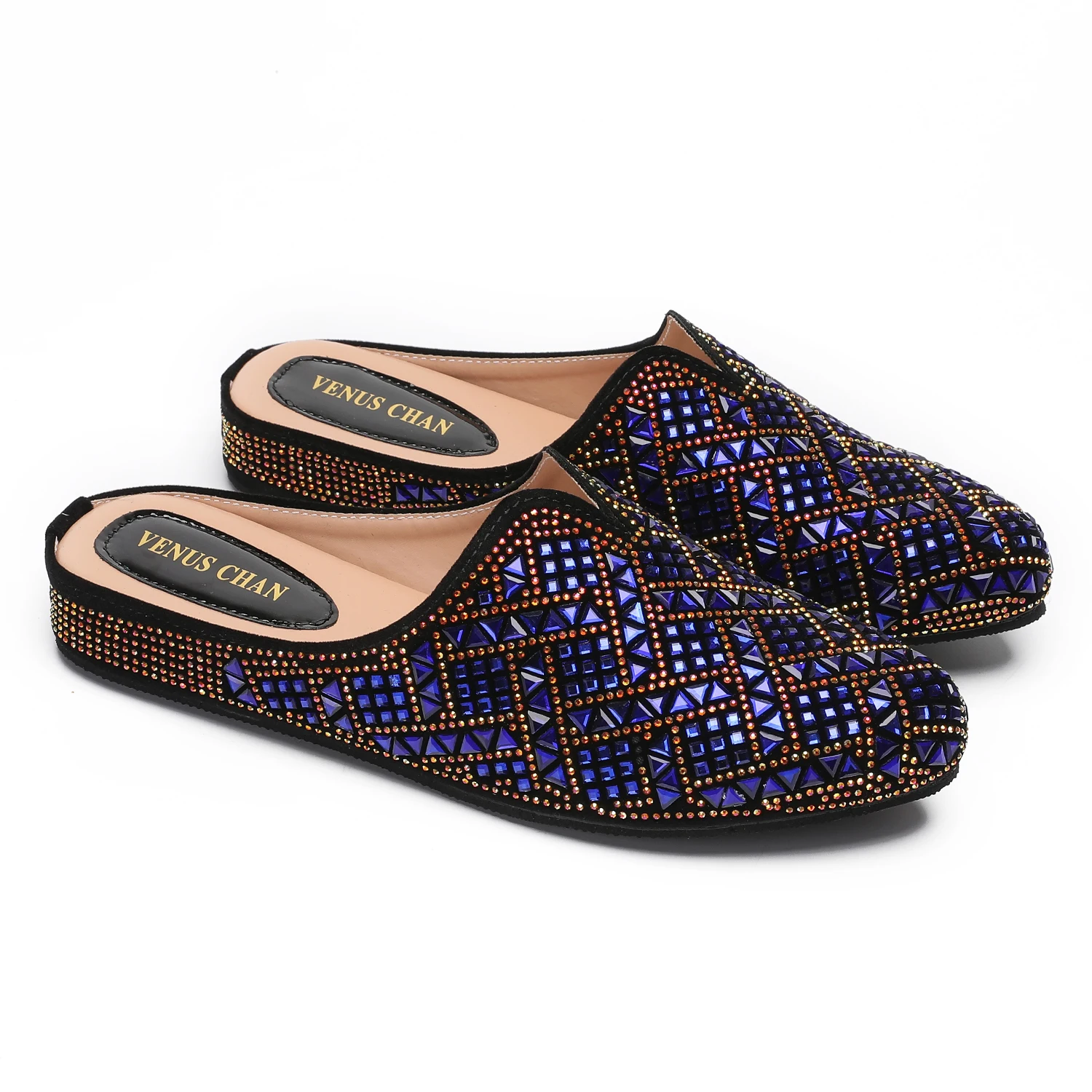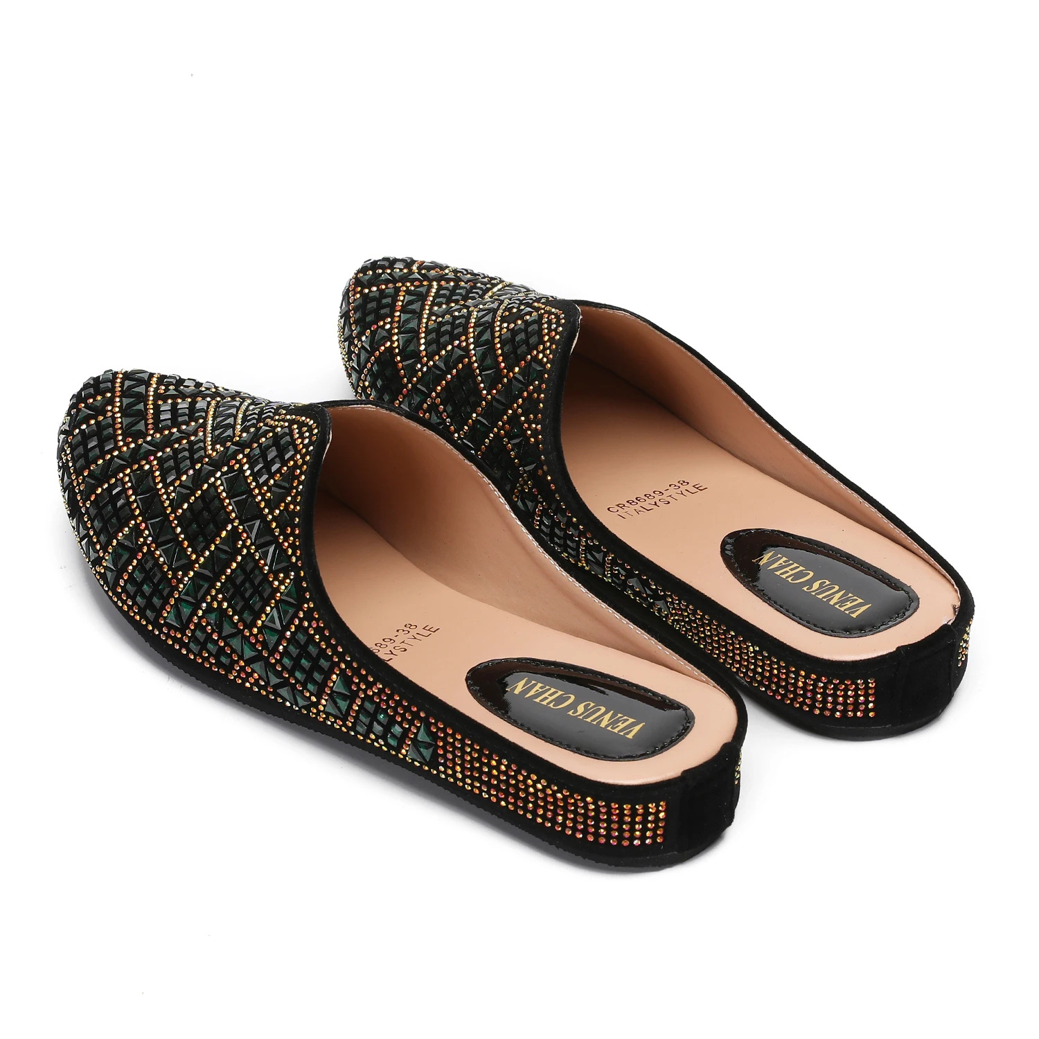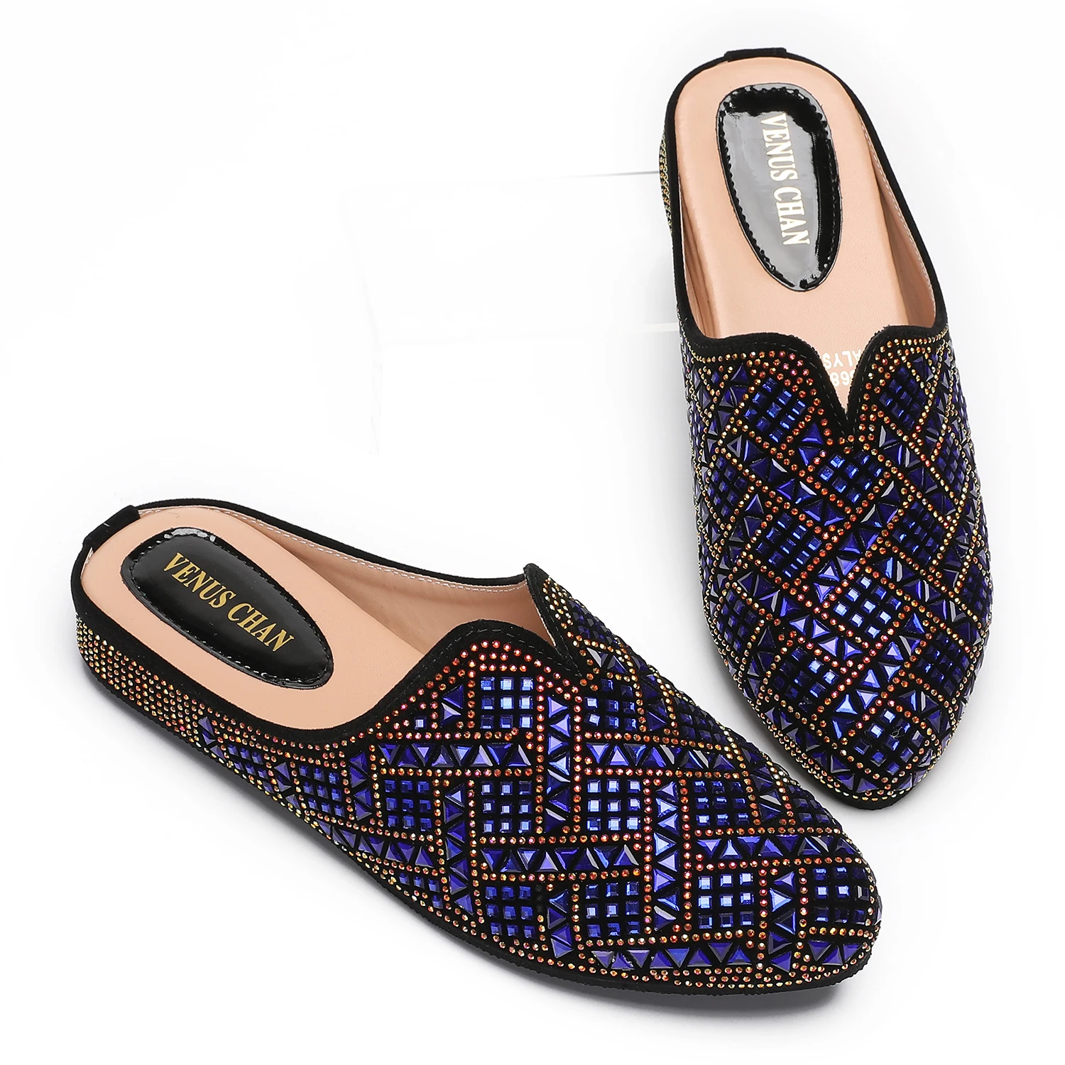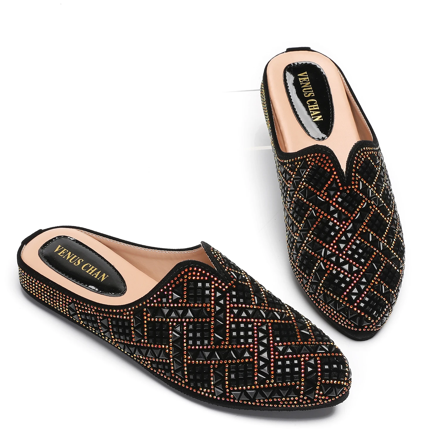 2025 Latest Design Nigeria Silver Color Half Shoes Elegant Flat Shoes for Woman Fashion Comfortable Party Slippers