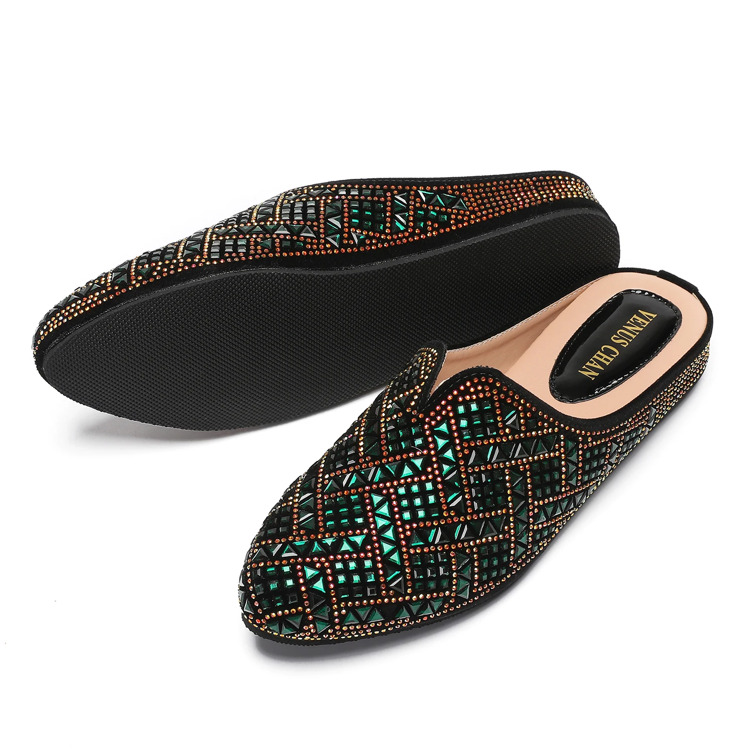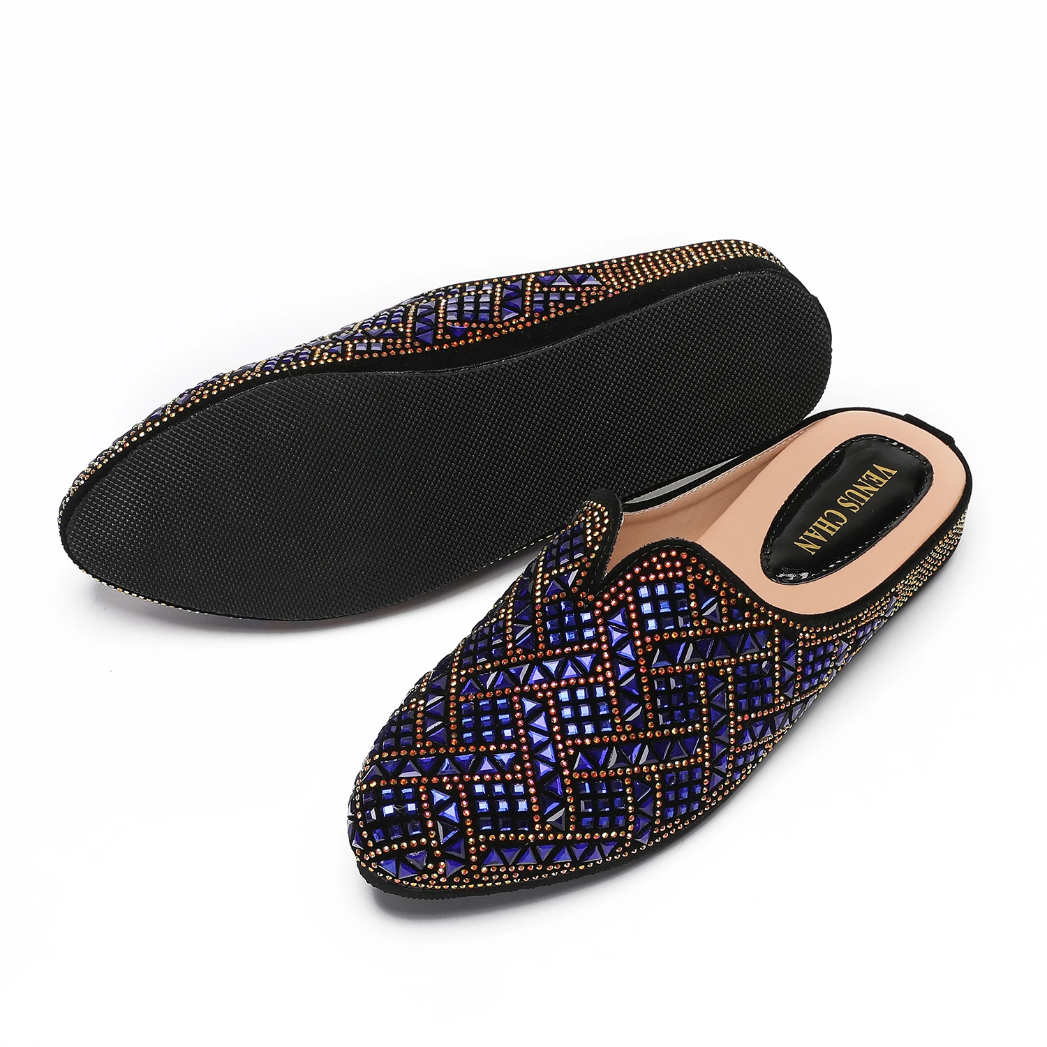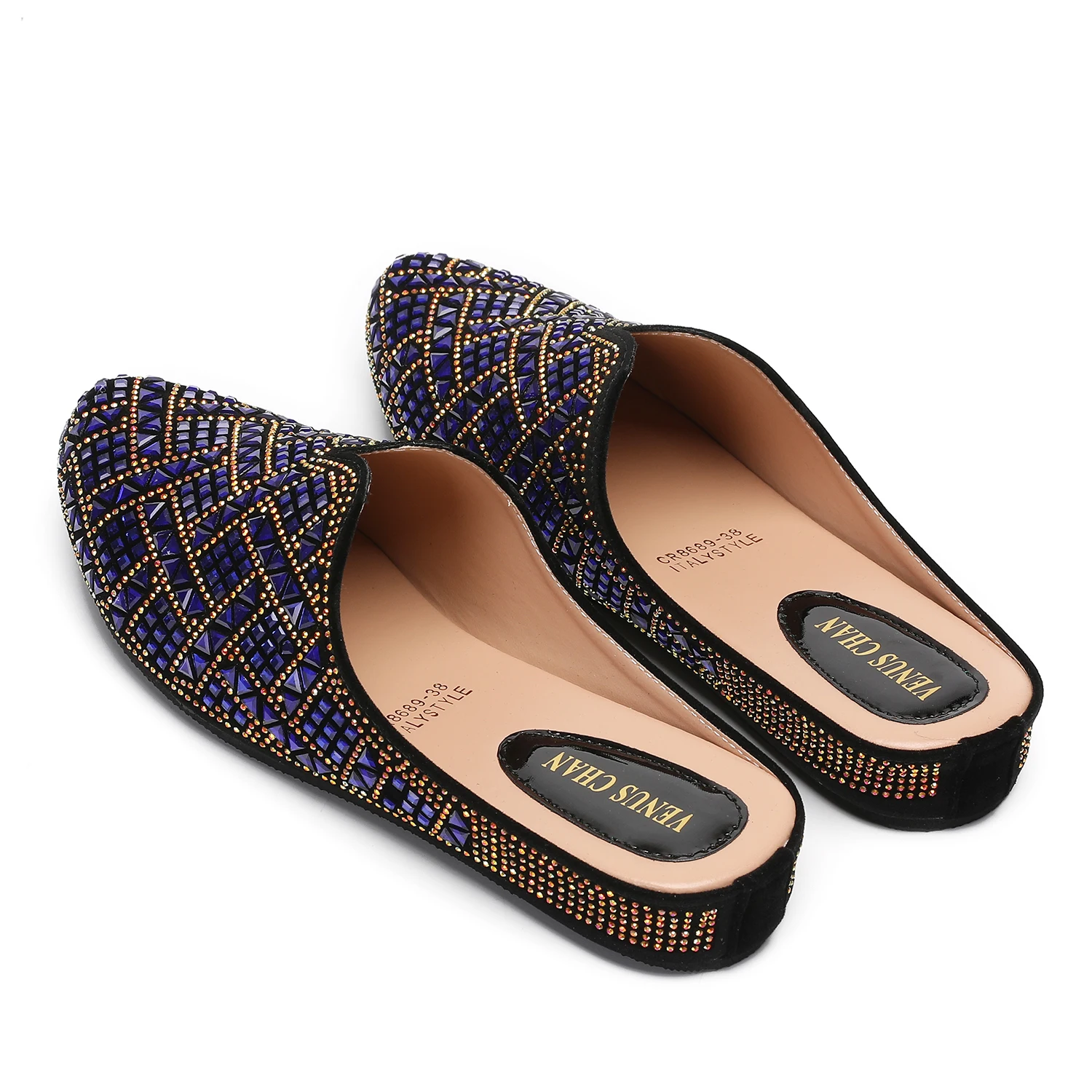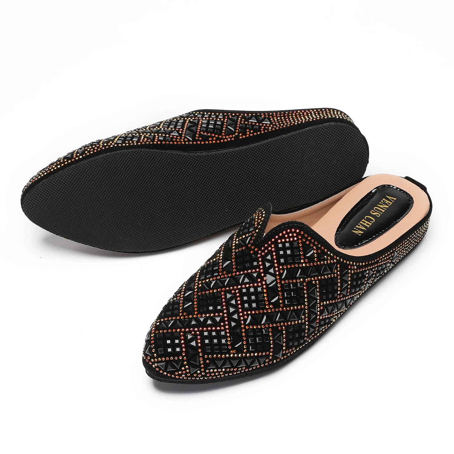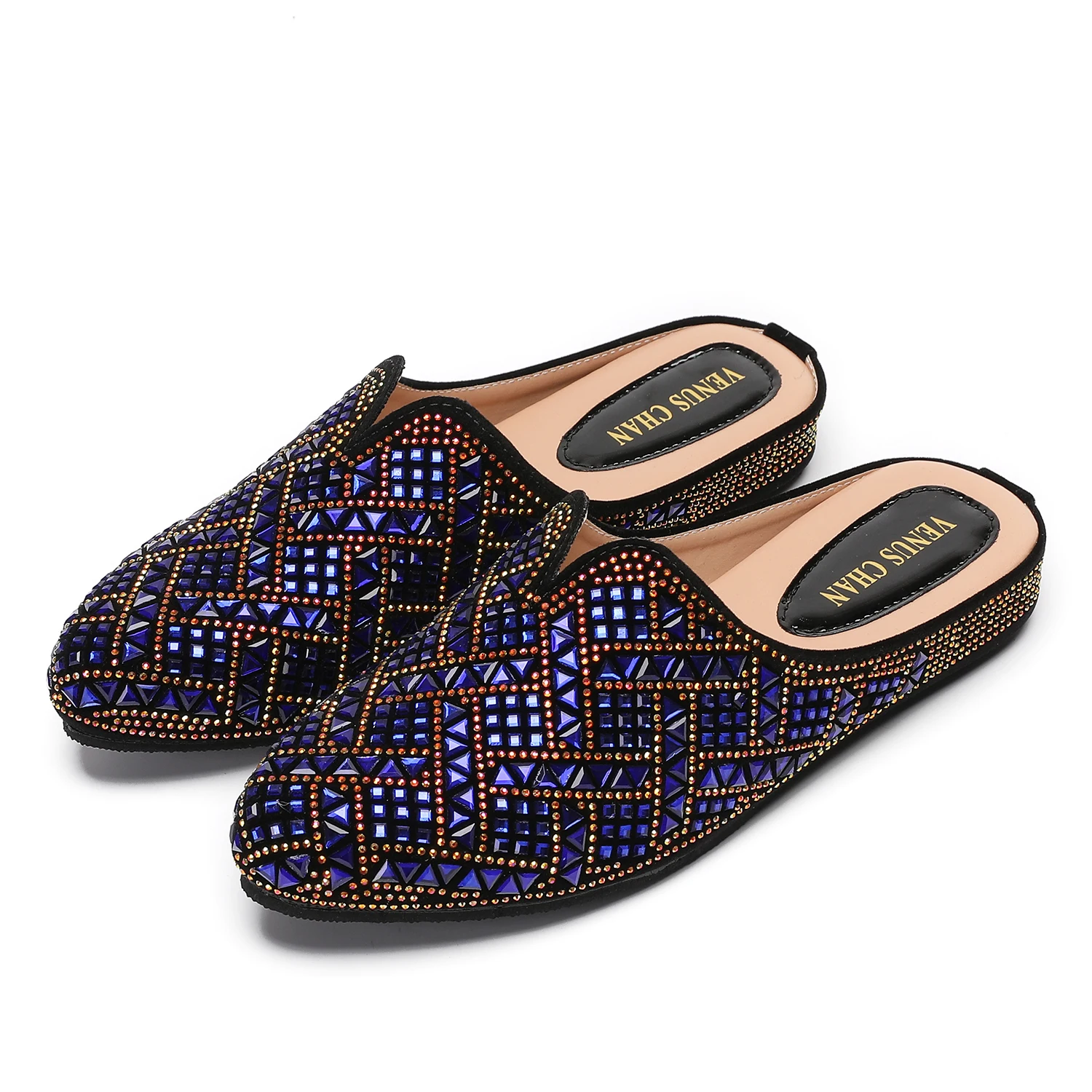 2025 Latest Design Nigeria Silver Color Half Shoes Elegant Flat Shoes for Woman Fashion Comfortable Party Slippers