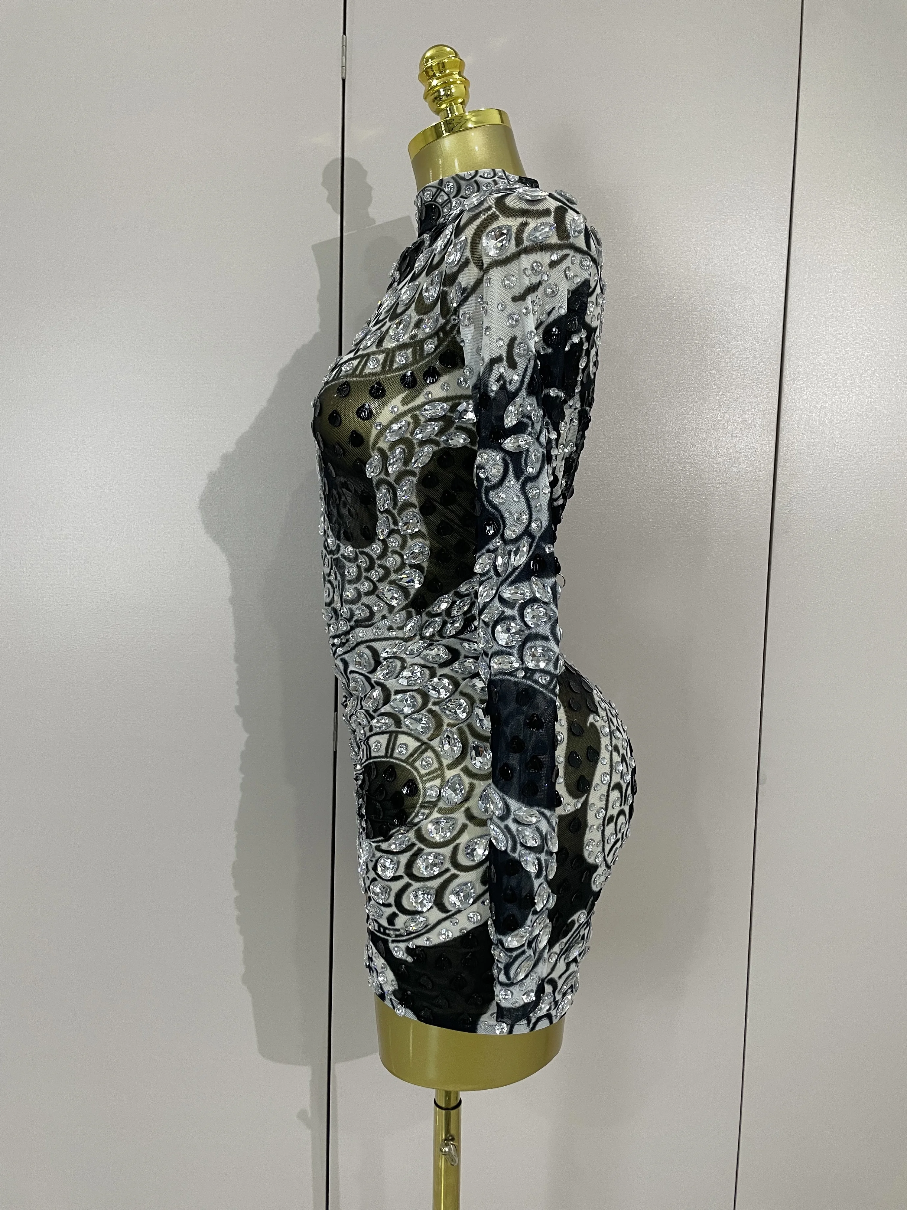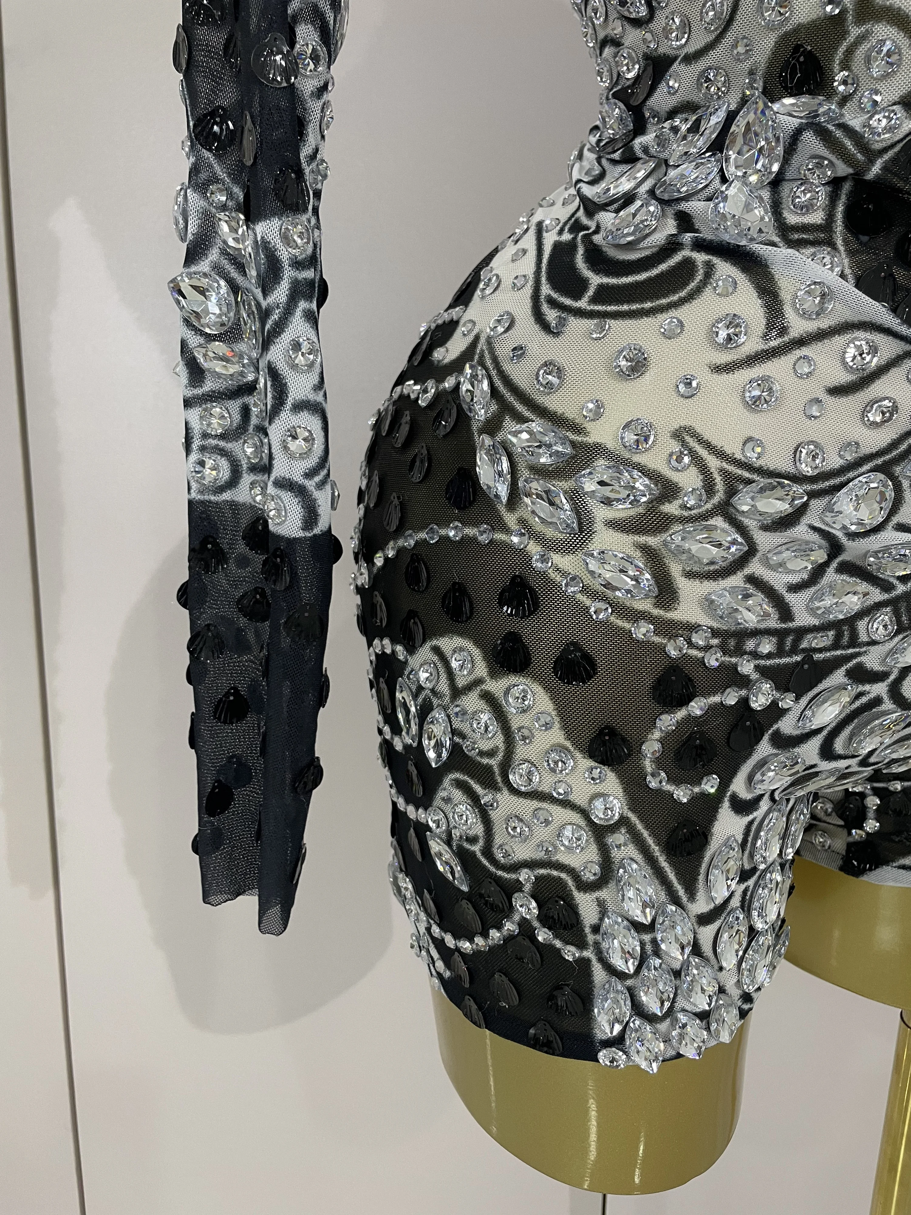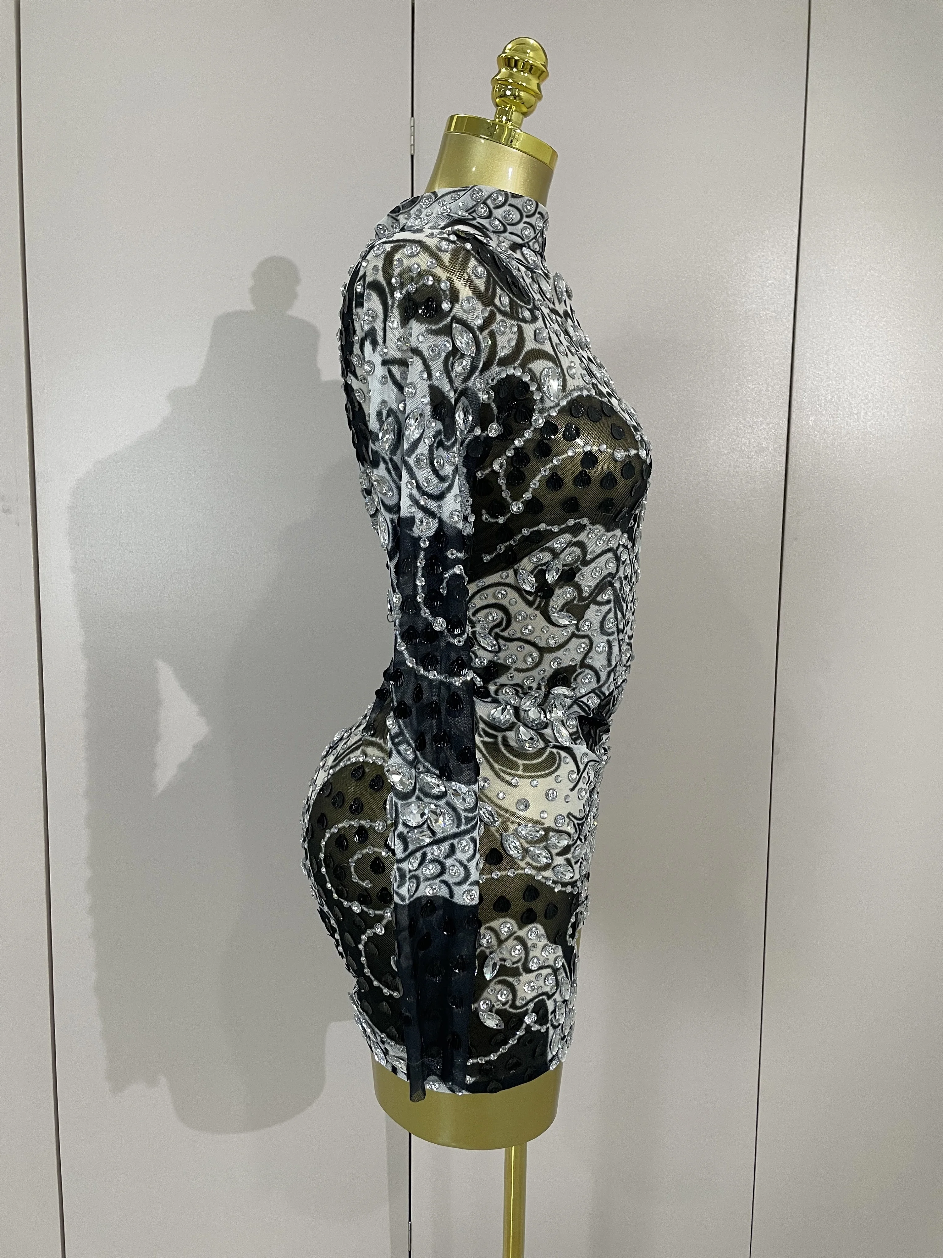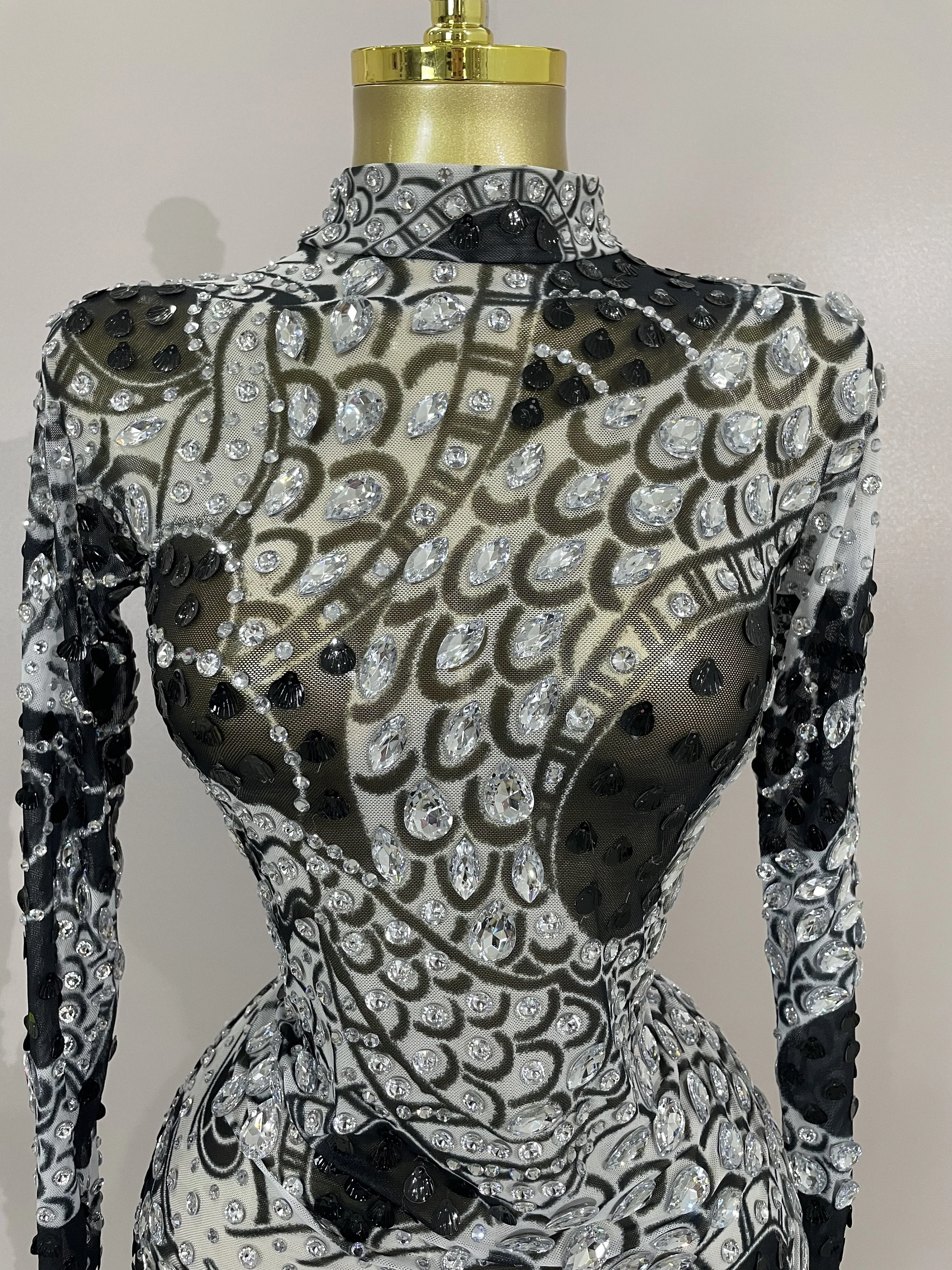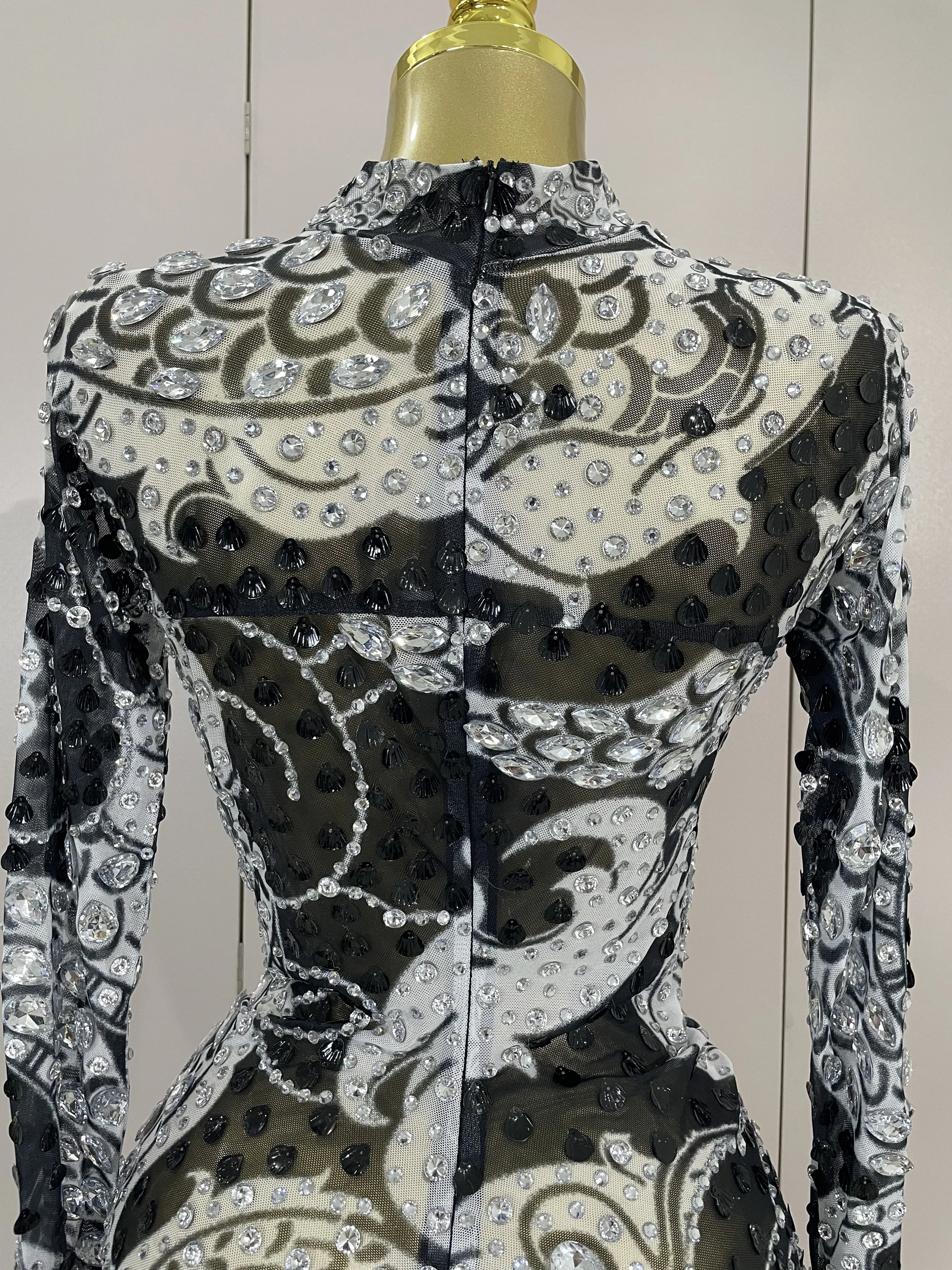 2025 Luxury Sparkly Diamonds Shell Long Sleeve Stretch Bodysuits Women Evening Birthday Party Sexy Nightclub DJ Stage Costumes