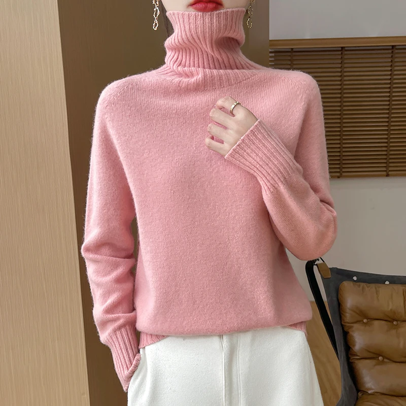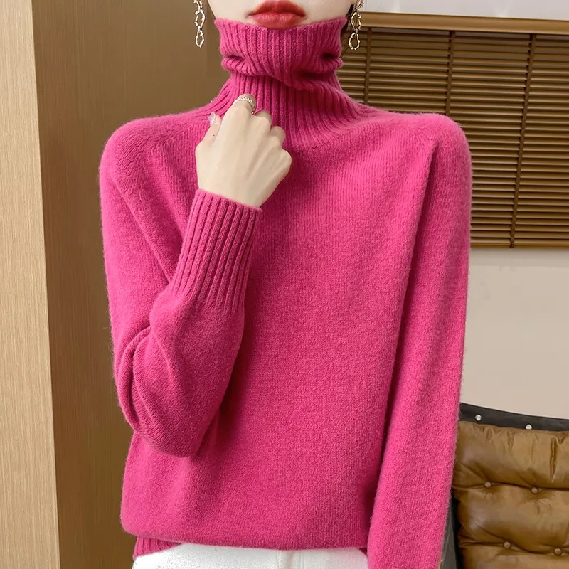 2025 New Autumn/Winter 100% Merino Wool Hoodie Solid Color Long Sleeve High Collar Warm Top Women’s 19 Color Sweater WQ708