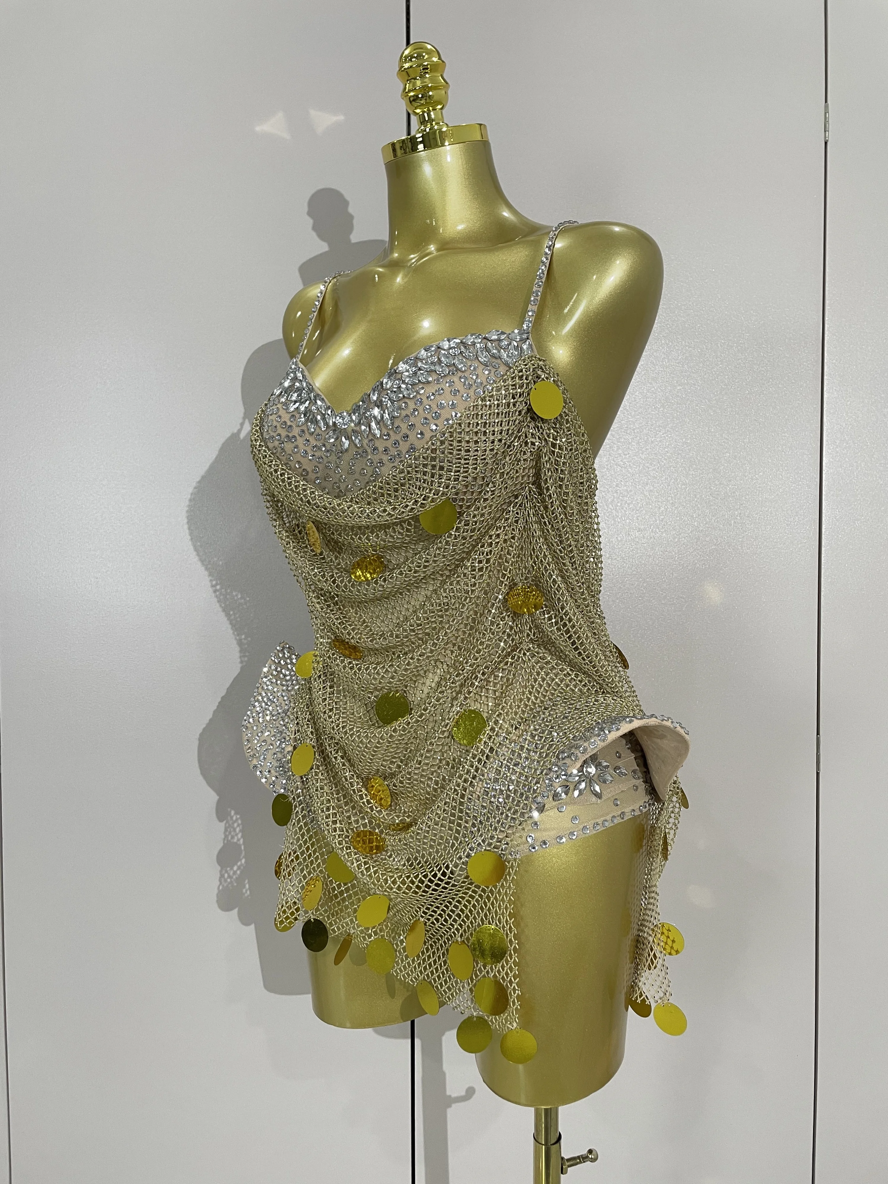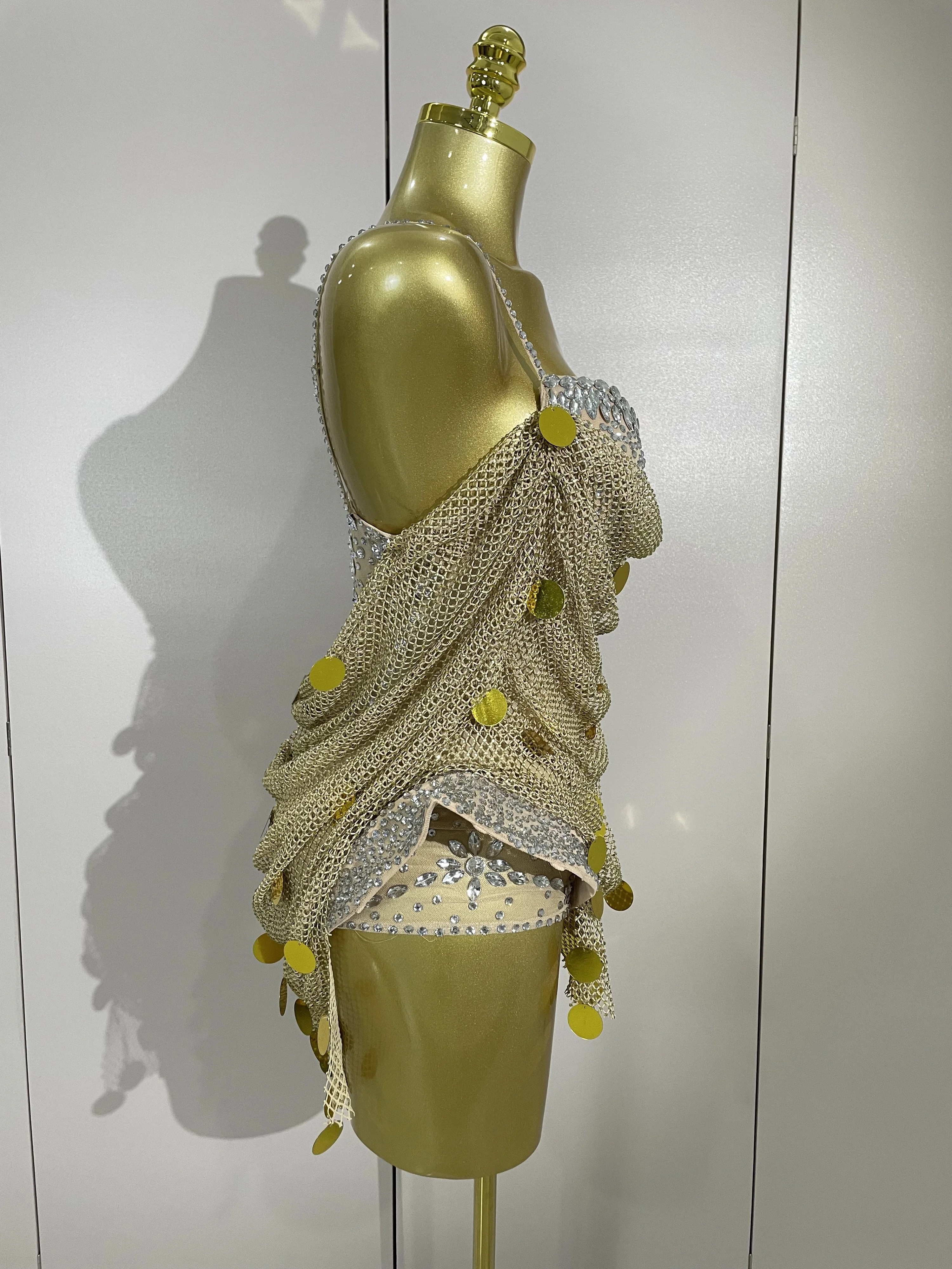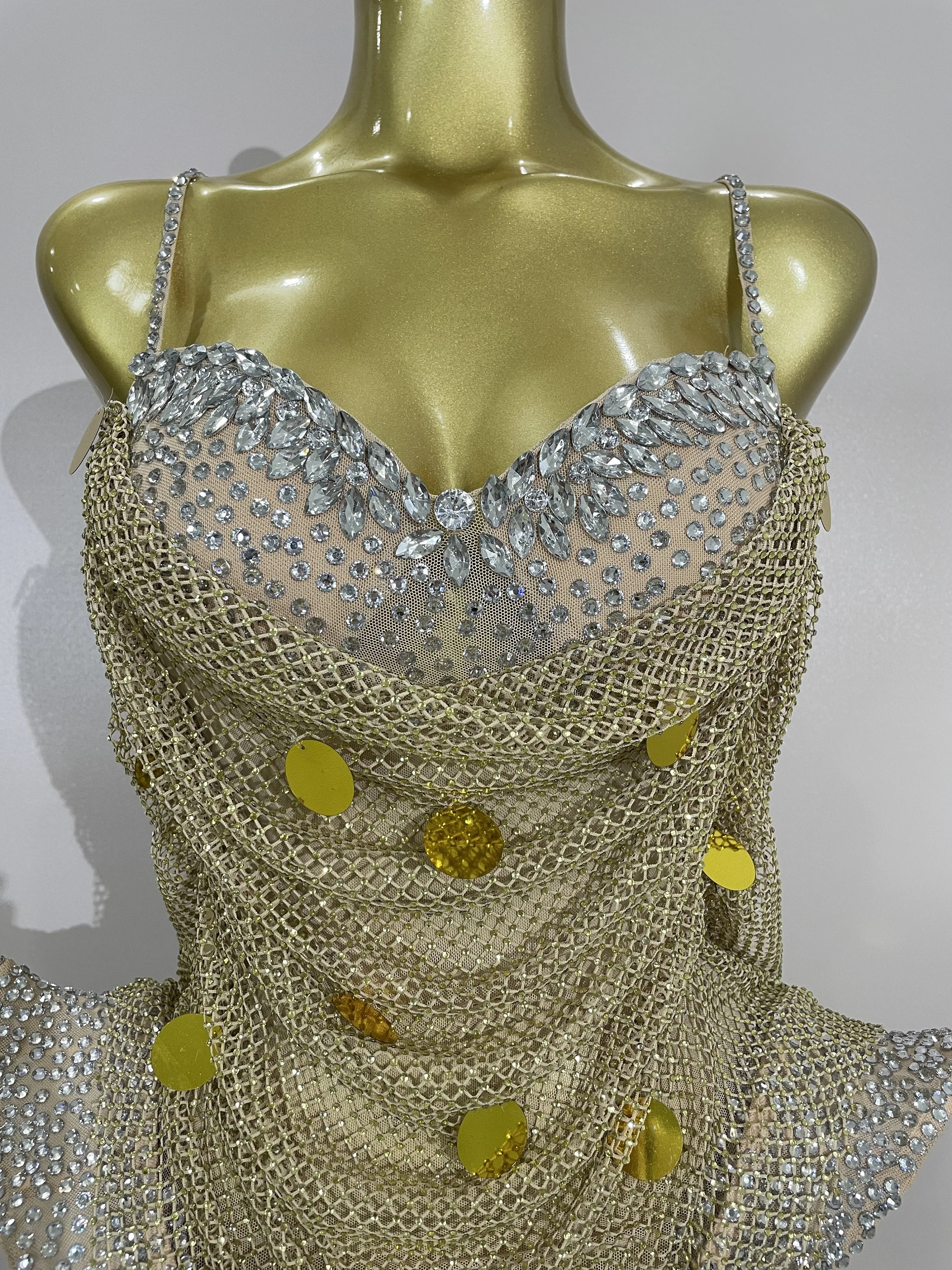2025 New Luxury Sparkly Diamond Sexy Mesh Bodysuit Women Evening Prom Birthday Party Gown Nightclub DJ Performance Stage Wear