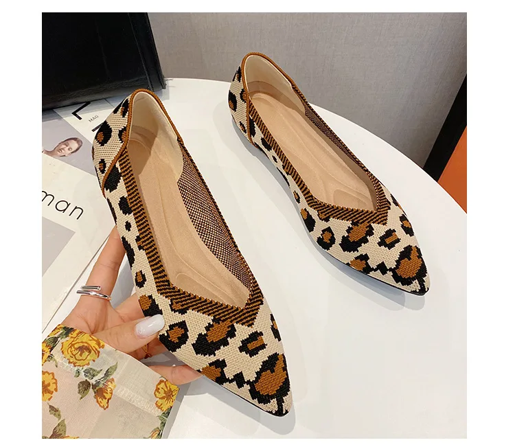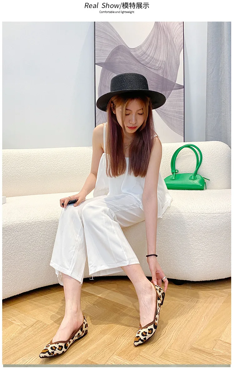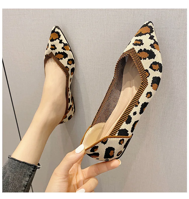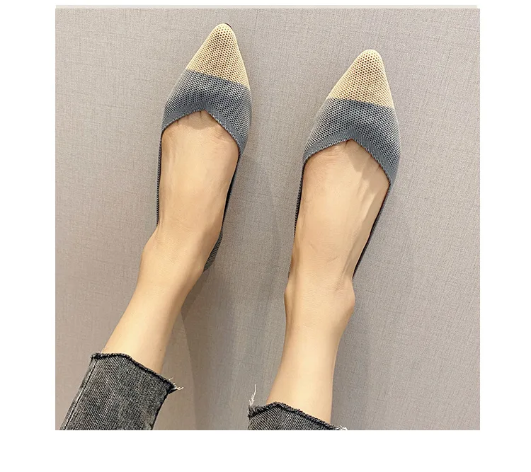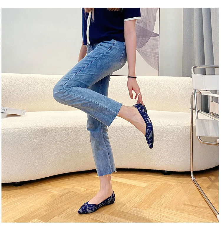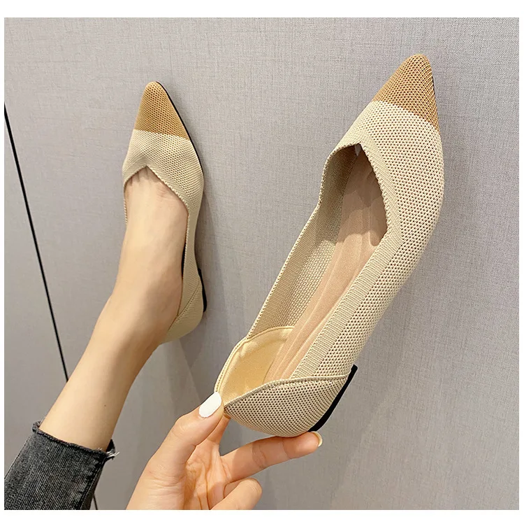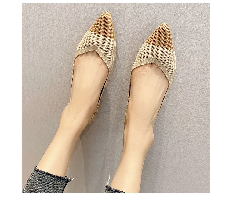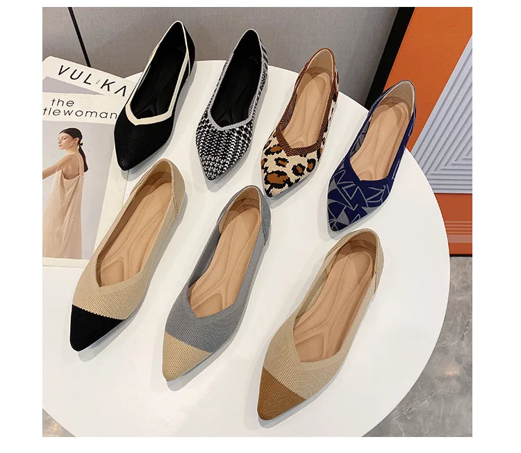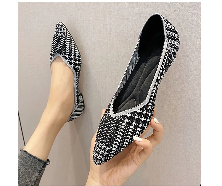 2025 new women’s shoes spring and autumn flat shoes fashion casual women’s flat shoes pointed knitting elastic comfortable shoes